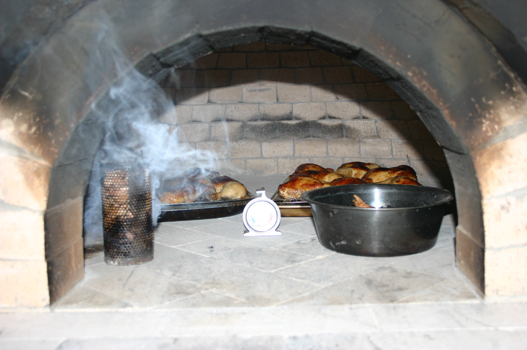 Tried the Porchetta recipe with a smaller pork shoulder (4-5 pounds). I put all of the ingredients into a small blender with some oil and made a paste. I filled the bottom of the roast pan with water and also put another tray in the oven with water as a moisture backup.The oven floor was at 300 and the ceiling was at 350. left it in for 3 hours and had internal temps of 170F. Let it rest for 20 minutes and it turned out really nice and tender.