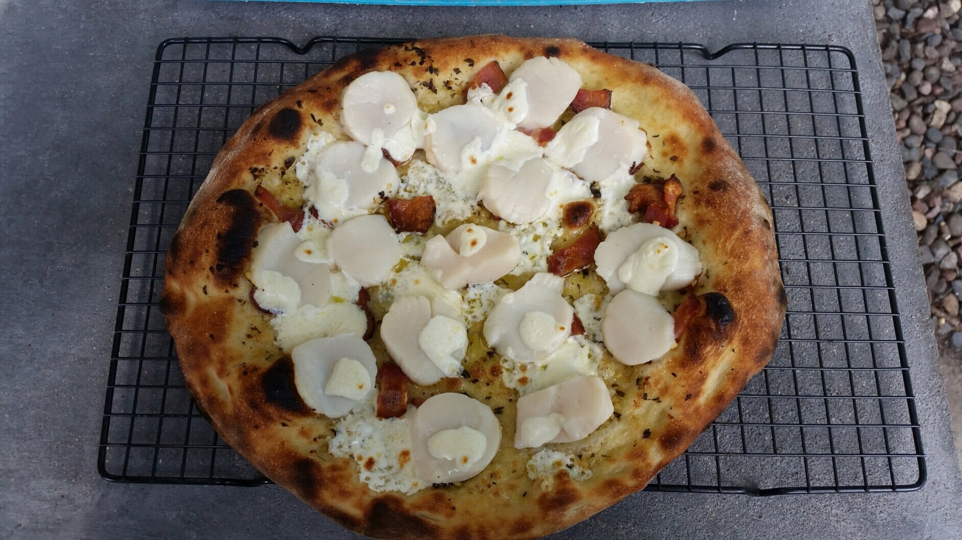 We'll I finally got my oven done enough to do some cooking. We had our first pizza party and had every one bring toppings for a pizza. My new favorite is what we called the bacon wrapped scalp pizza. It is pretty much as it sounds. Crumbled bacon ,fresh scalps, fresh mots, and the sauce was a garlic and herb olive oil. We cut the scalps in thirds so they were not to thick and put them on raw, and we're perfect when the pizza was done. We will do this one again for sure.