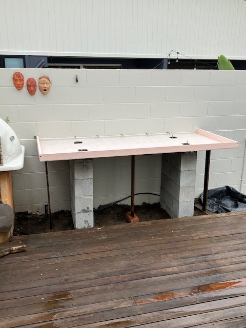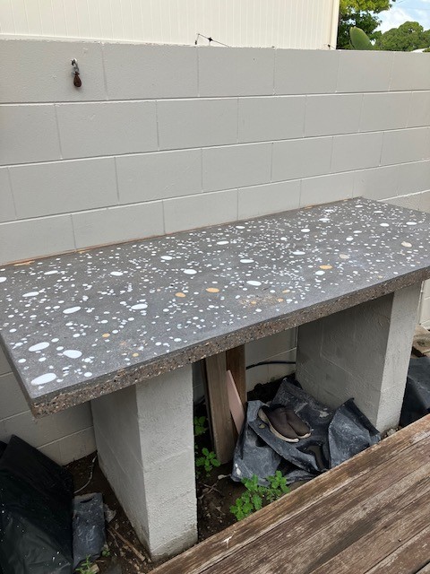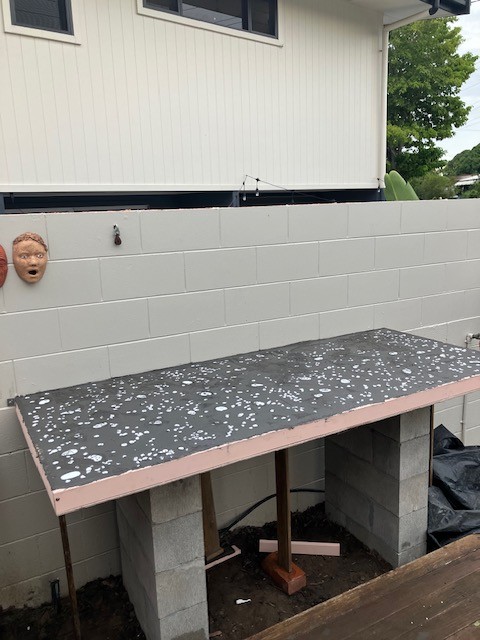 Having a table propped up with bricks beside my oven for the past 19 years, my wife decided she wanted a polished concrete table. Having done several polished concrete oven arches and purchased long ago a small polishing machine, I was keen to tackle it. I'll let the pics tell the story.