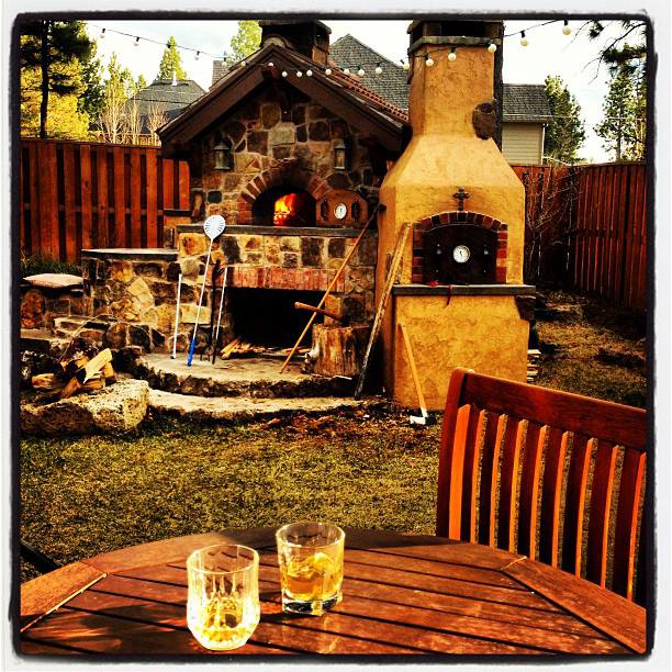 The thing next to the pizza oven is a Brazilian BBQ/smoker. I came up with the idea after going to a Brazilian Steakhouse (churrascaria). So, we can rotisserie or smoke meats in that or do the high temp cooking in the oven, or put it on a stick and over the firepit