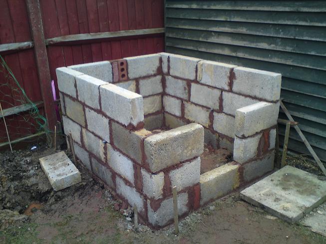 The concrete blocks and storage heater blocks were free and the kiln bricks were second hand from a reclamation yard.