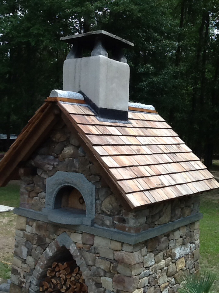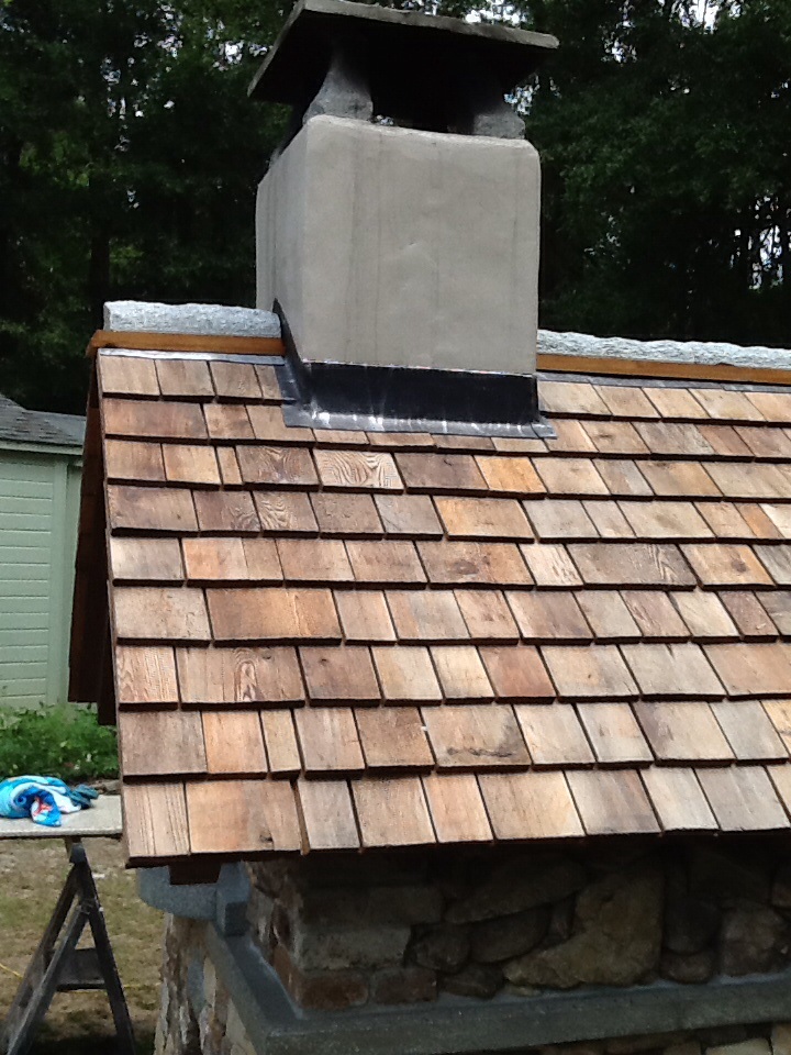 I still have to caulk in the top of the flashing, and I'm going to darken the finish on the chimney. I'm getting some staining from the capstone, because it is a touch too small. I used what I had...but I may change it out in the future. I actually don't mind the staining....I guess like how it doesn't bother some to see smoke stains on the face of the finishes.