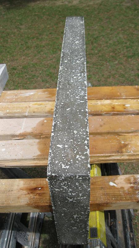 Slurried the the four finished pieces with white portland/polymer mixture and didn't really like how much it contrasted. So I sanded them down with 70 grit diamond pads to open the concrete up, and then re-slurried with cement that was 1/3 grey mixed 2/3 white. I like the toned down look better so this is how the next four will be done too.