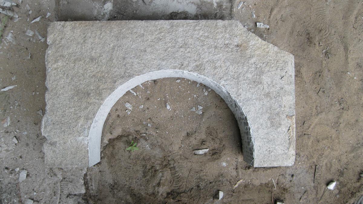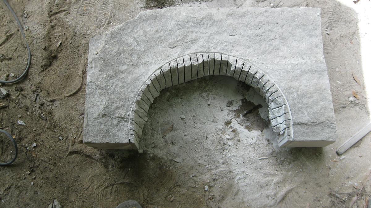 Put some time into carving the granite for the outer arch. Rain and T-storms shut me down before I had a chance to finish it. I'll keep picking away at it as time allows...tomorrow will be material pickup and the start for the framing.