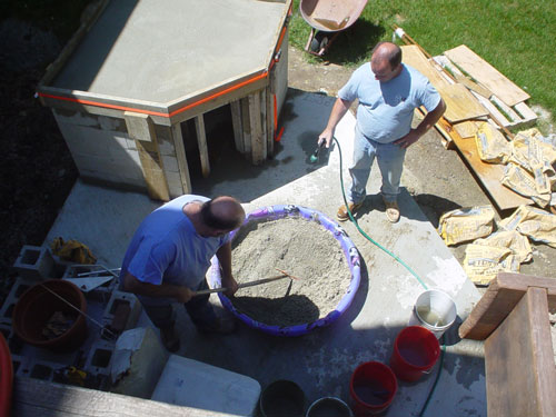 Anyway, we took delivery of 3.5 yards of concrete yesterday, and poured the pad...