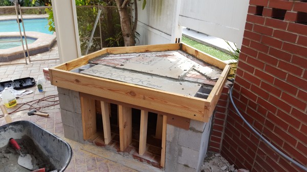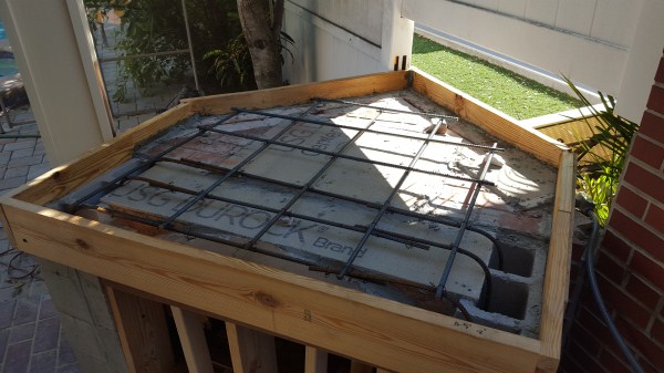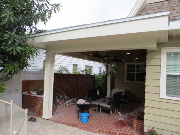 Ever since we bought this house I always loved this space as a canvas that we could turn into something much better. Now we are doing that. Phase 1 was adding a roof to the space. Hey, I live in Florida. It's hot and rainy during our never ending summer. Gotta cover the space to make it usable. So we did this:
