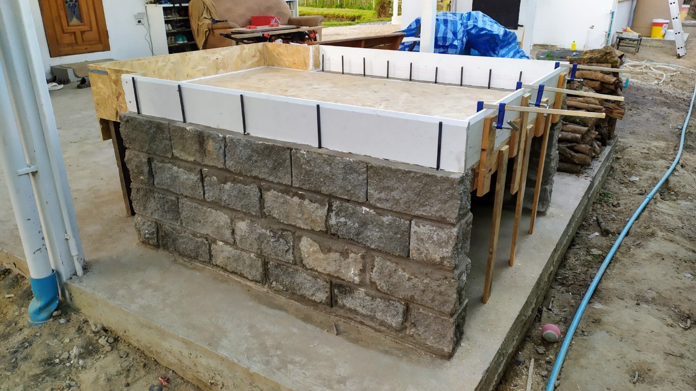 Nearing completion - insulation with Perlcrete + full jacket of AAC insulating blocks completed. First firing of insulated oven coming up... :-)