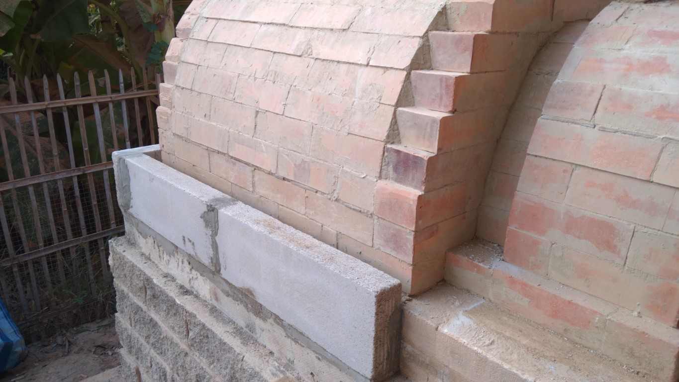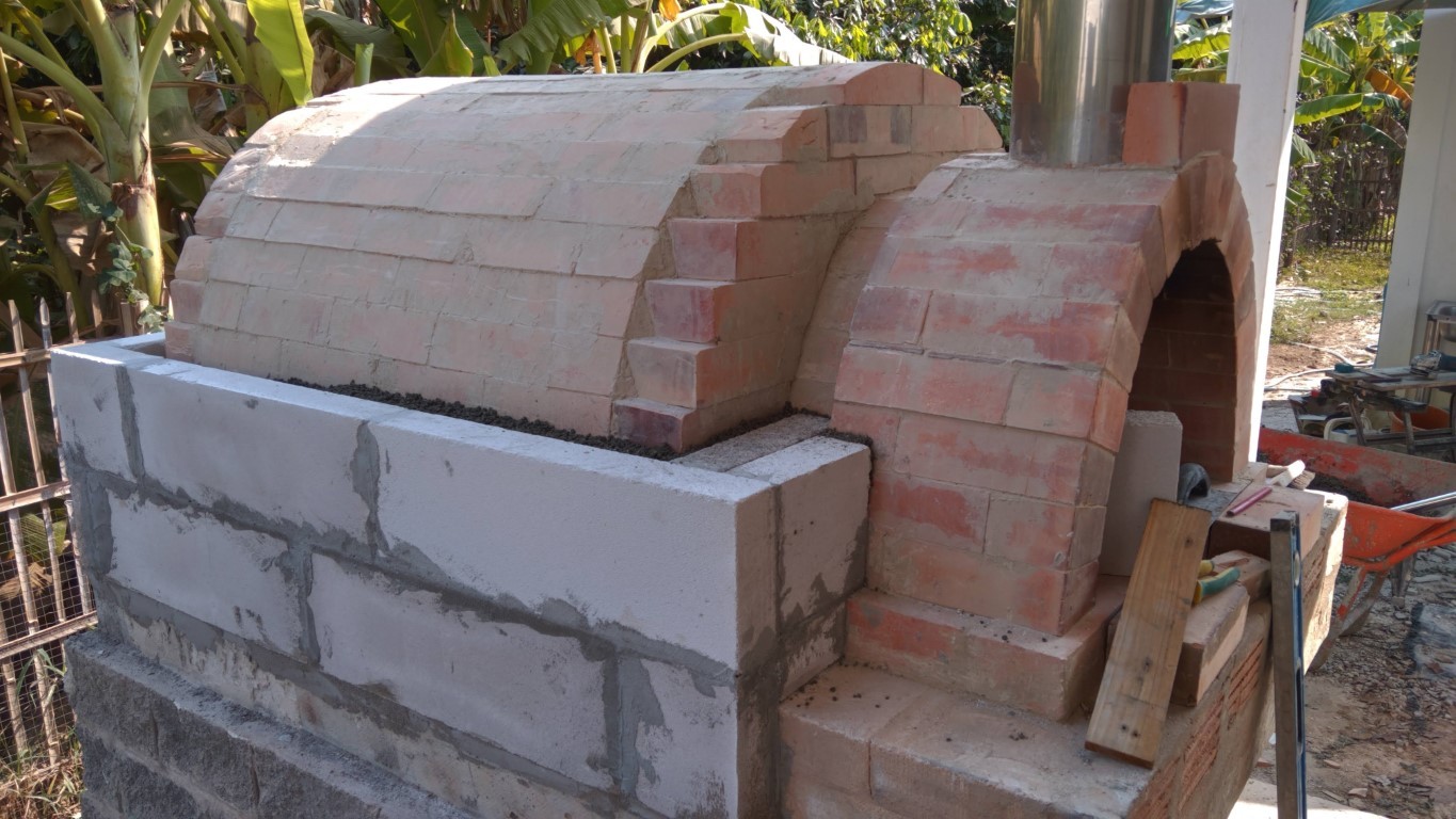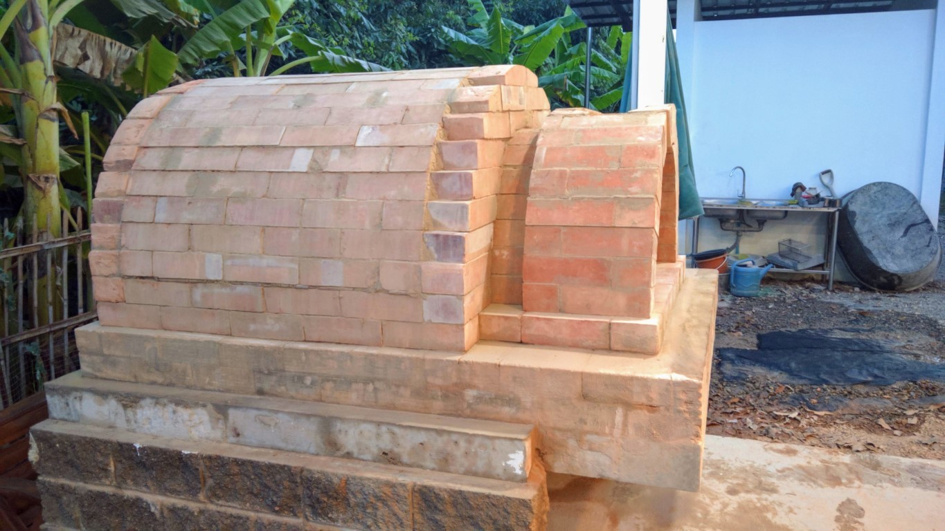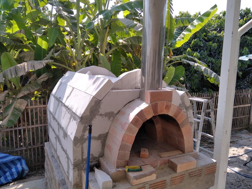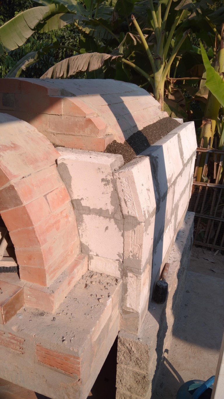 The first fire reached a max of 180C on the upper side walls, but I got to 450C on the second - oops, lol. Nothing cracked and all good to go. I think it helped that the main dome had already been built for 2 weeks and had sat under the hot Thai sun (dry season here), so all of the blocks were very dry already anyway.