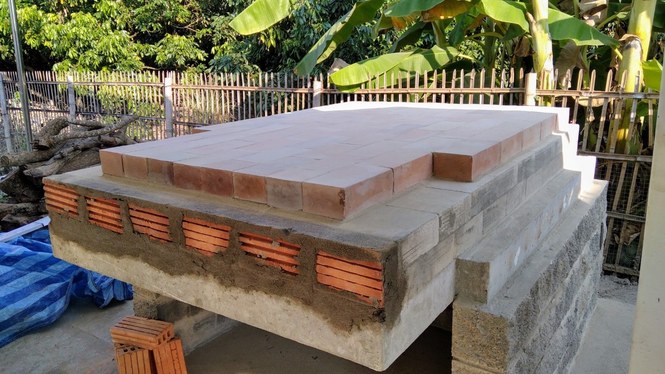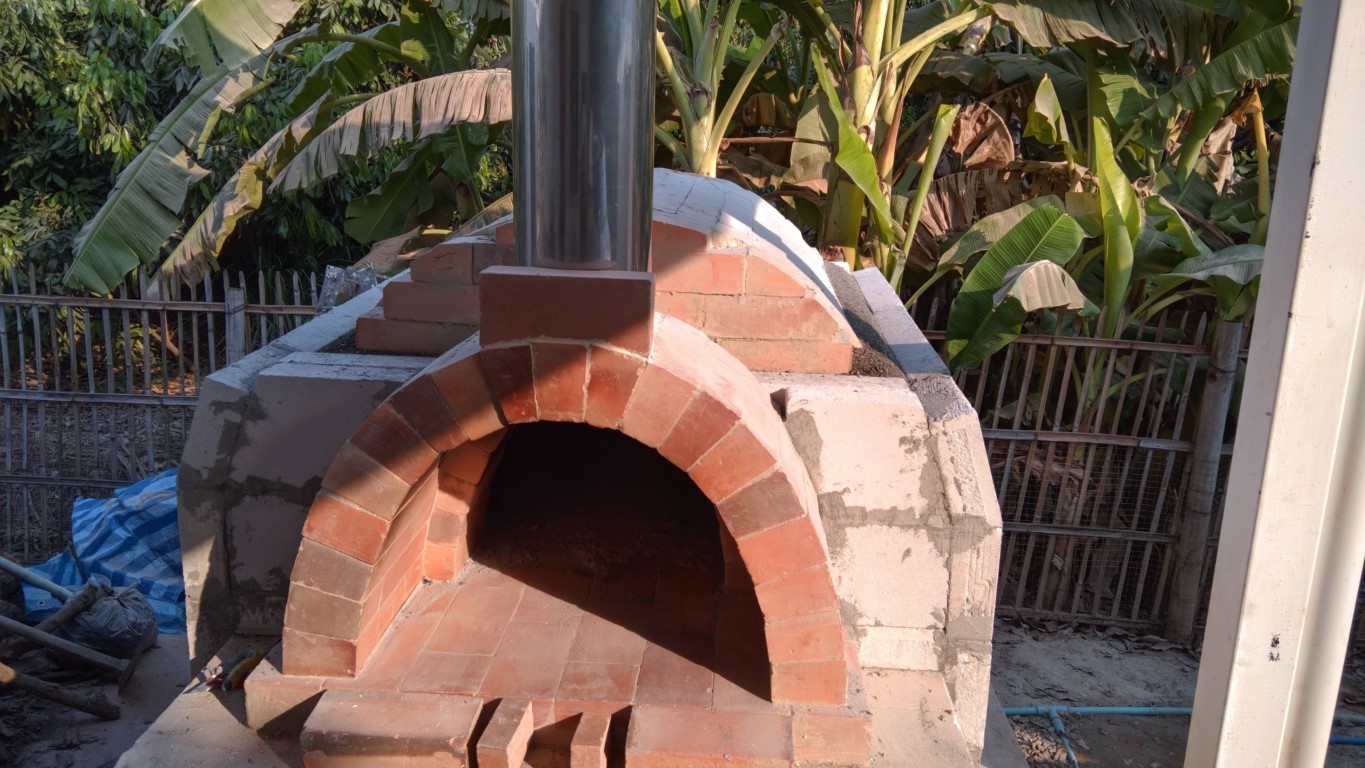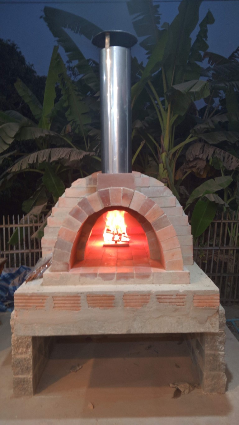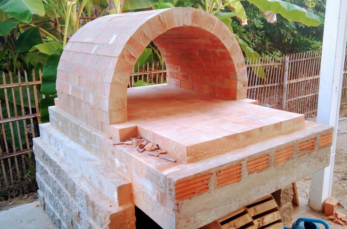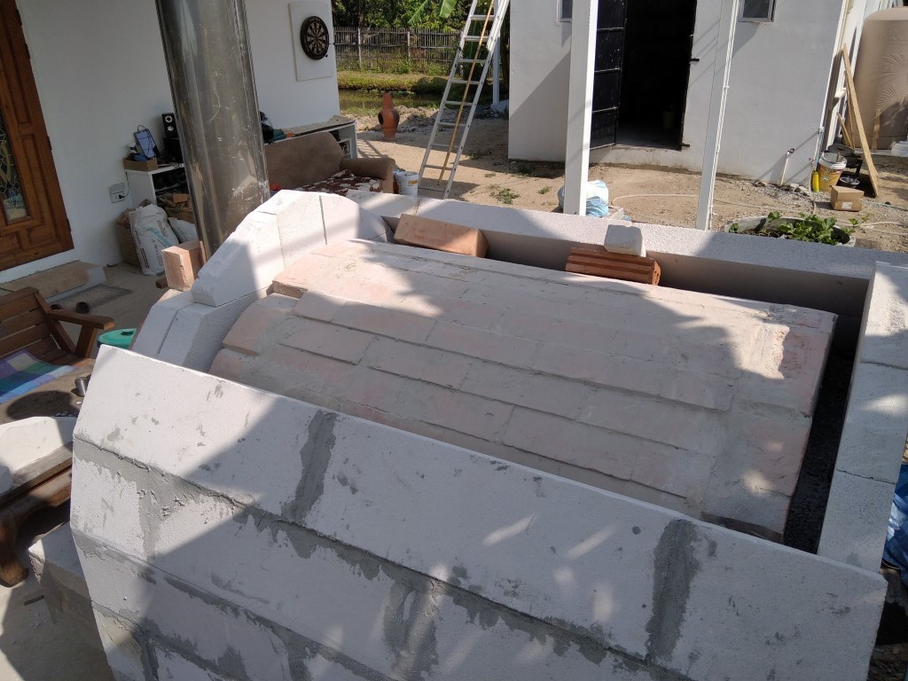 The first fire reached a max of 180C on the upper side walls, but I got to 450C on the second - oops, lol. Nothing cracked and all good to go. I think it helped that the main dome had already been built for 2 weeks and had sat under the hot Thai sun (dry season here), so all of the blocks were very dry already anyway.