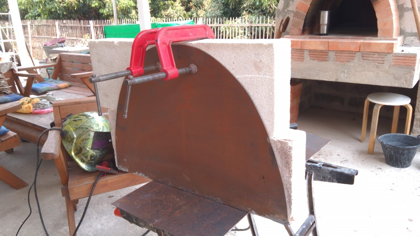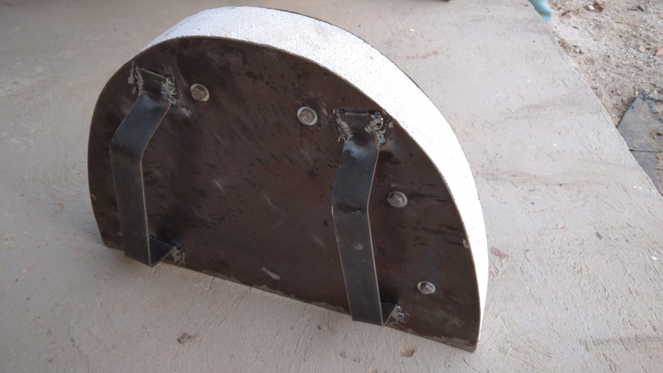 It's made from 2mm steel and a pair of 7.5cm thick AAC blocks sandwiched between the steel faces and carved to fit the shape. First use later today - I will report back on success, or otherwise...