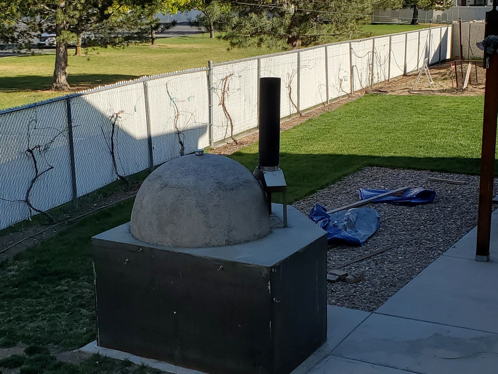 It was a full dome not adjustable, it must look flatter from the photos. Connecting the hood was a challenge, I used concrete screws with high heat epoxy. We shall see how long that lasts. I was surprised how well the chimney connecting collar turned out.