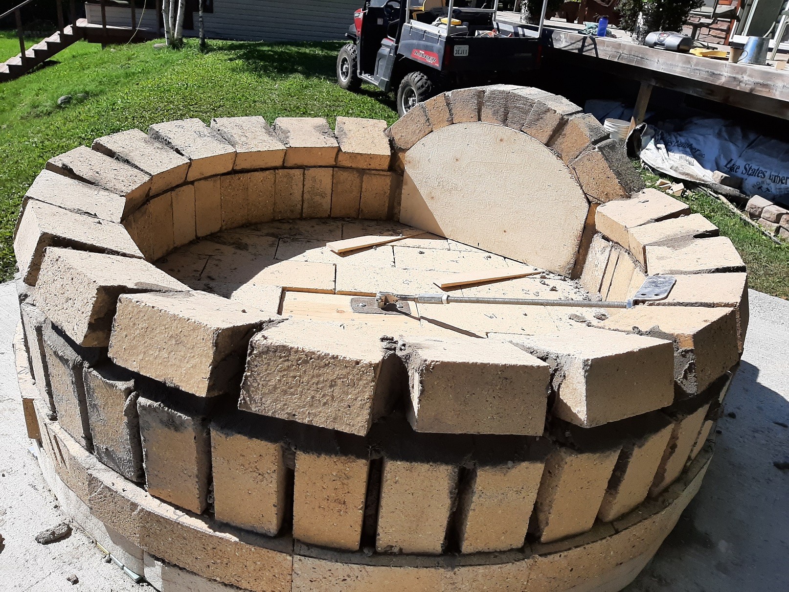 Today, I stopped adding courses and spent some time in the dome while the top is open enough to work in. I definitely won't be crawling in through the opening like some photos I have seen. I mortared in pieces of brick around the inside of the opening, maybe adding strength, improving air (smoke) flow, and for piece of mind. I can see where building 2 of these things would be good. You learn a lot by doing. I also did the same small brick inserts around the outside of the opening and started looking at how the vent landing will be. I figured a brick and a half long but now thinking maybe just a brick length for the landing. I think the actual vent will be a half brick wide by the opening width, around 16 inches.