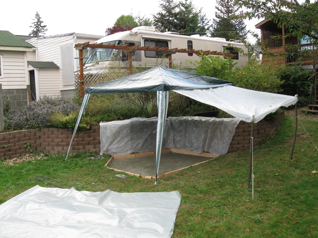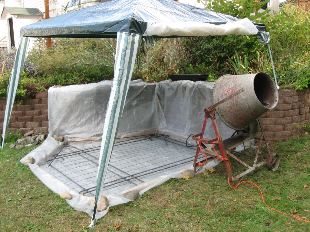 Here's a preliminary dry-stack of the stand. It seems pretty obvious that the foundation is not only not level, but not even flat. I've had quite a few amateur problems with my foundation. <Sigh>
