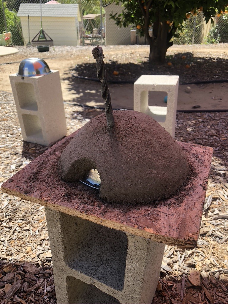 I’ve done plenty of wood work, construction, and auto bs in my diy history, this is the first I will have mixed cement in any form. I’ve done some research. I created a small scale test dome as a redneck testing vehicle for thermal reactivity and insulation. I molded a 1.5” 3:1:1:1 (with a pinch of sawdust too) mix over a stainless bowl and let it dry 24 hours carefully while spritzing. It turned out beautiful, then I covered in another 1-1.5” layer of pirete mix (more about that later) and then a thin layer of Portland with a pinch of sand. I let that setup 48 hours and again, looked marvelous. I sort of intentionally did not cover the bowl in any wrapping or lubrication to test how sticky this mix really was. It was real f’n sticky. The bowl was semi-permanent but had plan. I built a fire in the bowl with the demo dome upside down. Burned that fire for a couple hours solid and then sprayed it with a hose to, um, thermal cycling test it. Figured this would fairly quickly expose any fundamental flaws in my mixes. This thermal shock also allowed me to remove the stainless bowl due to the rapid contraction/expansion. Wow, I’m impressed, all the recipes essentially came from this forum and it works well(*). The inner dome after removing the bowl is ceramic glass smooth and only shows minor hairline cracks. I assume the stainless heating up in the fire caused the ceramic like kiln finish and don’t expect that over my balls surface in the end. There was some cracking around the crude mouth opening I installed on the outer layers but that’s to be expected. So next I built a fire under the dome as one traditionally would. Let this burn for 30-40 minutes and then, again, with the hose. Wow, magic cement. I basically tried to blow it up. As to the insulation bit. After the first longer fire and hosing, I waited about 5 minutes and then picked the bowl up to move it bare handed holding the exterior. It was plenty hot but not so hot that I couldn’t carry it 15 ft and place it where I wanted it to rest. 3 hours later it was nearly the same temperature, I probably exaggerate, but I was very surprised by the retained warmth given it’s small scale and por treatment.