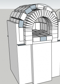 So in the photos is the space where i want to build it, I will knock the back wall out and make a tunnel type oven as it's more rectangular than square. I have attached some 3D model photos as well of my plan. The Model is all 75mm fire bricks on a 50mm ceramic fibre board base. I will cover the dome in 50mm ceramic blanket then ~35mm vermicrete the outside of that and then ~15mm render finish. Would that be enough insulation to do longer cooks? Or will i need the whole half brick width to retain enough heat?