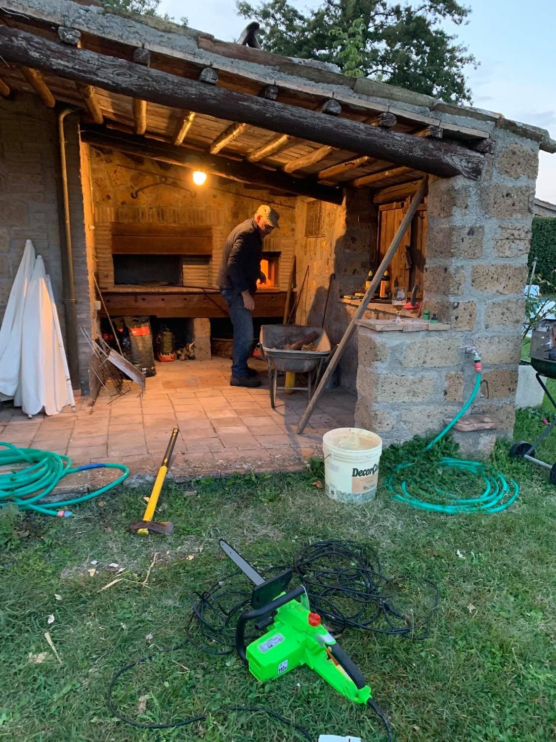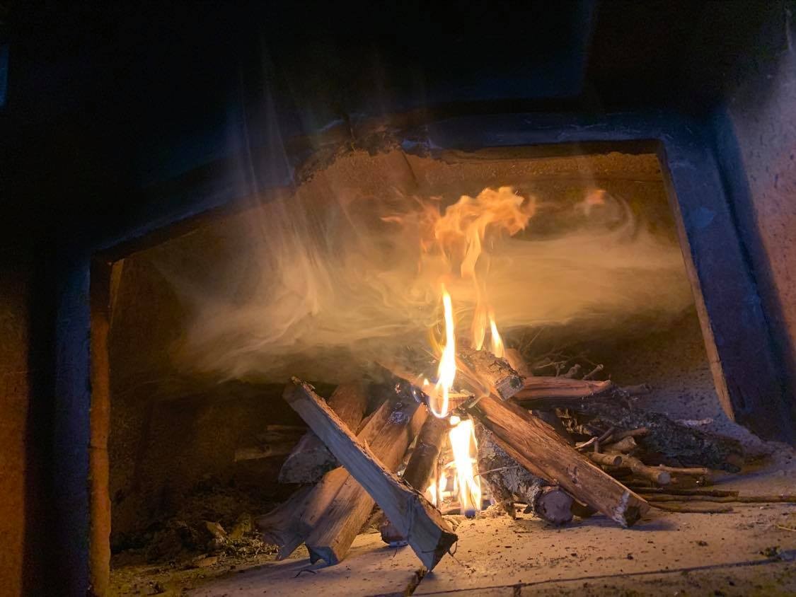 We use local wood for both ovens, and there's a huge amount of smoke - when my nephews visited from the UK, they wore snorkeling masks while cooking!