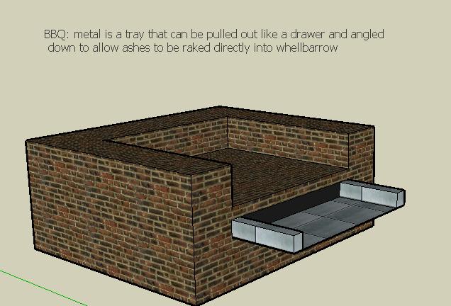 Anyway, I want to add a metal pull out tray which can angle down just under the hearth at the door opening. When ready to rake out the ashes you pull out the tray, angle it into the wheel barrow and rake the whole mess straight in using the tray as a large flat 'funnel'.
