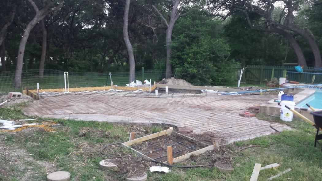 I recall reading somewhere never to attach a new concrete pad to a pool (with rebar and all). It'll separate and you'll have to deal with that, but it is better than either party trying to move independent of the other and causing it to crack. Namely--the pool. Well, the crew here drilled in and died some rebar before I could catch them. I had told my contractor not to attach them, but that got lost in a month of farting around.