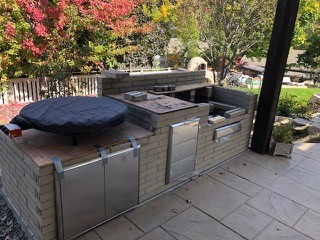I built mine over last 18 months. Selecting equipment was a challenge for sure. I found it helpful to ID the type of equipment I wanted first without getting into the nitty gritty of brand etc. My first step was to build a two tier patio for kitchen and fire pit. That was a couple years ago. The kitchen built has 42” WFO, larger 22” komando style grill smoker, gas grill (about 40”), side burner, 14 foot serving bar with insulated dry sink built into Glas reinforced concrete countertop, two under counter storage doors on either side of a built in Komodo grill space, 30 inch tool drawer below the gas grill, two door storage area below dry sink, 3 drawer storage built into serving bar and an under counter storage space for a rolling service cart. I purchased all equipment but WFO which I built last summer. Holding off let me finalize layout specs for cabinet bases I built from metal stud and track skinned with durock, glass reinforced browncoat and stucco. I use Komando for most small smoking jobs. I will be able to get smoke into WFO with little difficulty if needed for big jobs. My dry sink came out nice, it doubles as a beer / wine/ water chilled and accommodates 3 half 4” steam table trays with covers to serve chilled foods. I opted not to do a refrigerator, the dry sink has been great when packed with ice. It has a drain into the flower bed behind it.