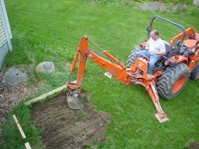 After much negotiation, I have now started my oven project. It has now evolved into an outdoor patio, with countertops and a grill attached to the oven. We excavated for the pad this week and I spent this morning laying rebar and mesh.
