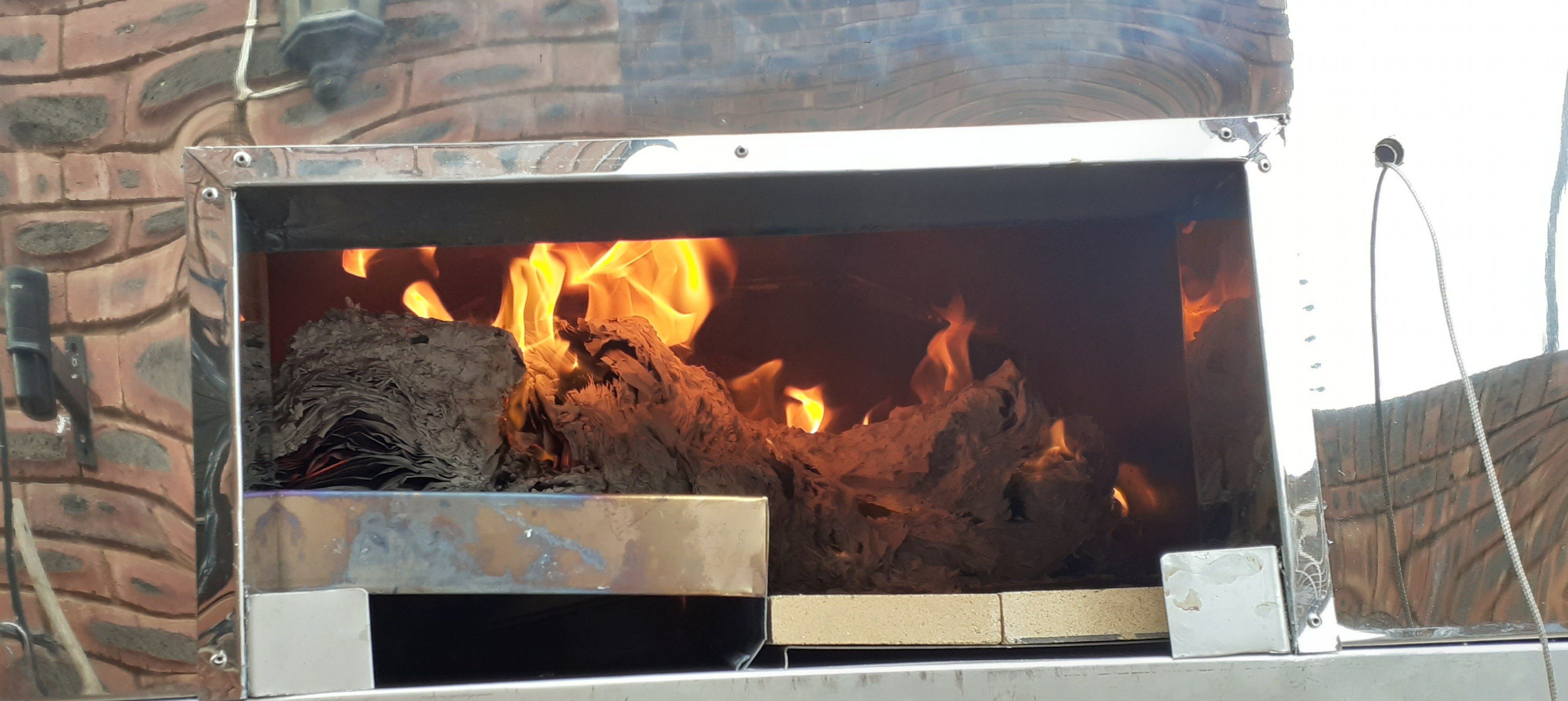 Left side of the oven has a Stainless steel tray to hold the logs and acts as an ash tray as well