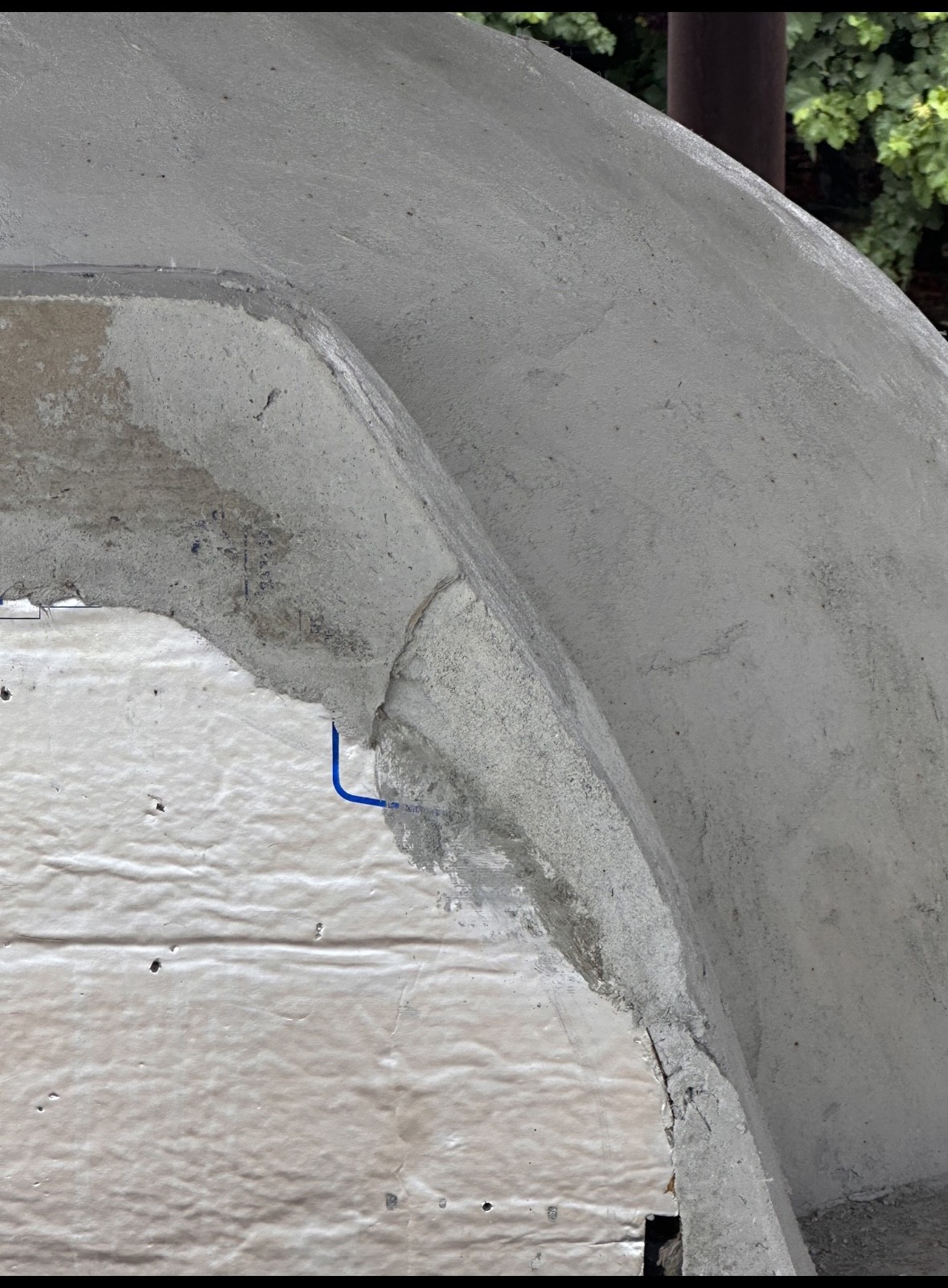 Hey everyone. We’re 1 week and a day out from my intial cast. No cracks formed except for hairline around the joint. Success! I took off the front form for the gallery and I did find some mistakes that I could have prevented if I was more careful. I had my Buddy measuring where it was thick enough and I think he missed a spot. Anyways I don’t think it’s detrimental to the structure and I can put a facade on to cover it.