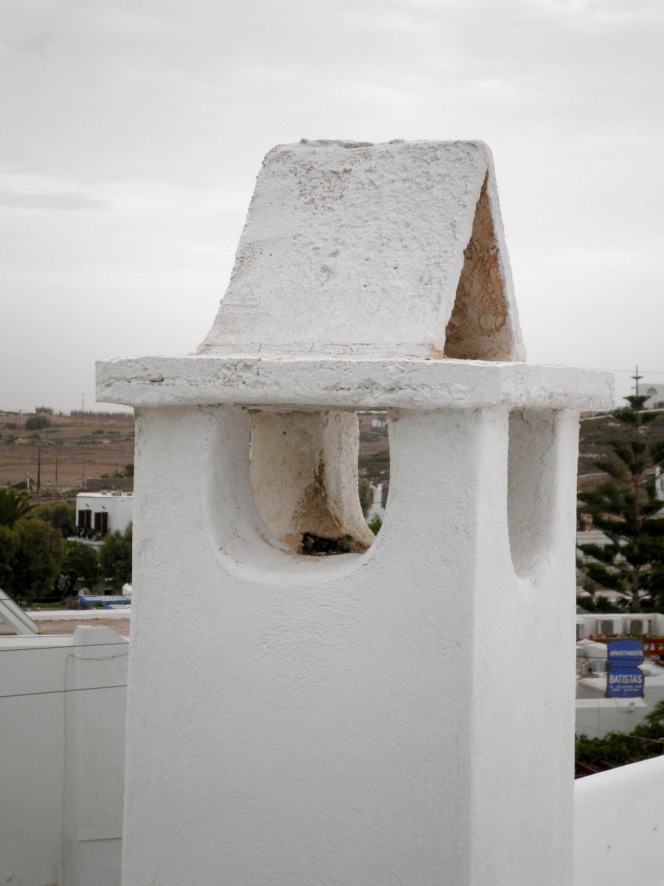 Two years ago we spent a week on the Greek island of Paros and among other things I noticed how varied their chimney caps were. Hardly any two were the same. Here are some pics of just one of them.I liked the simplicity and cleverness of this one.