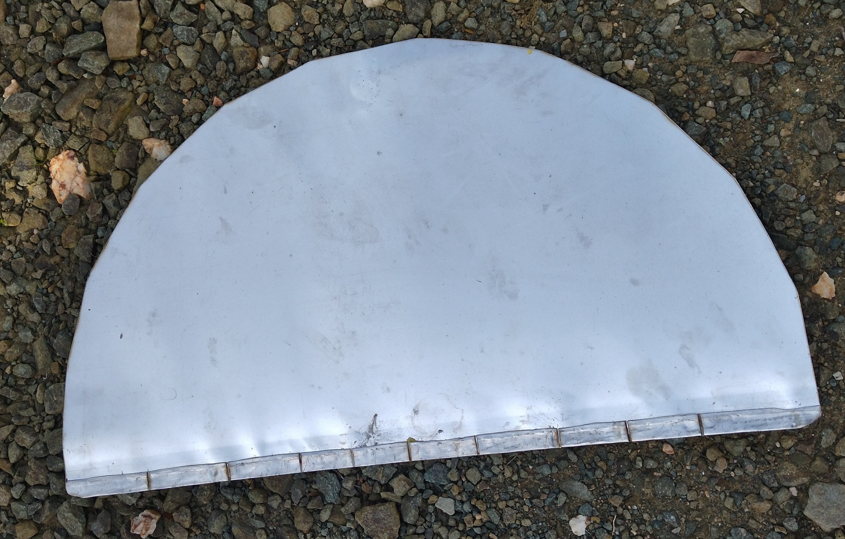 An explanation on my door, I used . 5/.6mm stainless steel for the bulk of the door, being made of 3 main sections,. The 2 flat sections, smaller one from inner arch template, the larger one from outer arch template making it with a lip to seal the dome.The center section I cut 130mm allowing 2 X 15mm lips to be bent to accommodate the 2 flat sections (a 20 mm lip would have been easier) Thin angle grinder slots were cut at fairly regular intervals to allow for bending the arch. I bent the flange out for the larger end and in for the small end. I made it long enough to bend into the flat base for about 30 mm. I used stainless steel angle for both flat sides at the base so it would slide without the sharp edges catching the oven floor. I used 4 strips of 25mm x 1.5 mm horizontally to strengthen the front as the handle would come on later. The front section I screw on with 5mm screws and the rear one with 4mm screws. Securing the rear one first to make it easier. I now had 100mm width between the two ends which I filled up with 4 layers of ceramic blanket through the gap left at the bottom, which I closed with a piece of the.. 5mm St steel which can slide in from the side. Put the handle on before the ceramic blanket, mounting it on 2 of the reinforcing plates. I then riveted some fire proof belting on the lip section. The door is surprisingly sturdy and weighs 4.2kg..I will attempt to post more photos here or separately, I am not great at getting them transferred from one place to another.