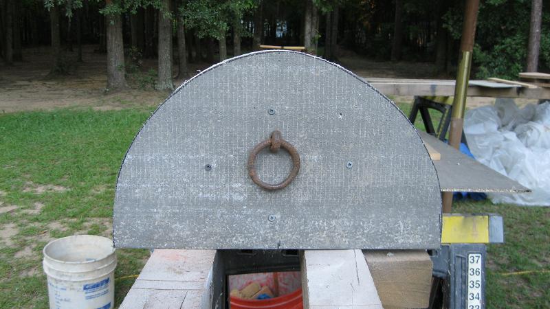 I have poor metal working skills so the door I use is carved from 2 inches of airated concrete block , hebel. The stuffs light soft and easy carved with woodworking tools chisels and rasped etc. The wood face is silasticed to the front and this remains cool I never have hot handles. You'll find a link at the bottom of the post