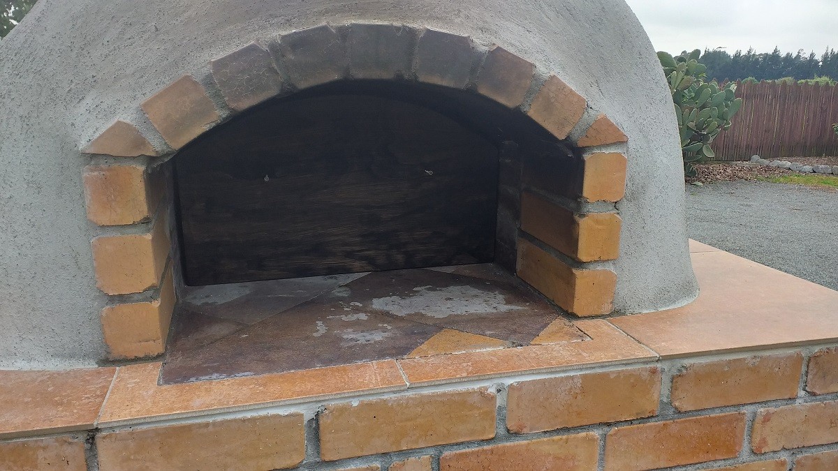 We made pizzas two evenings in a row. On Saturday night, after we finished cooking pizzas, I fitted the door. On Sunday, late afternoon I made fire again. The door helped to retain so much heat that I only needed to make fire for about one and a half hours and the oven was back to 600degC+ and held the heat much better too. I suspect that the bricks are well saturated now.
