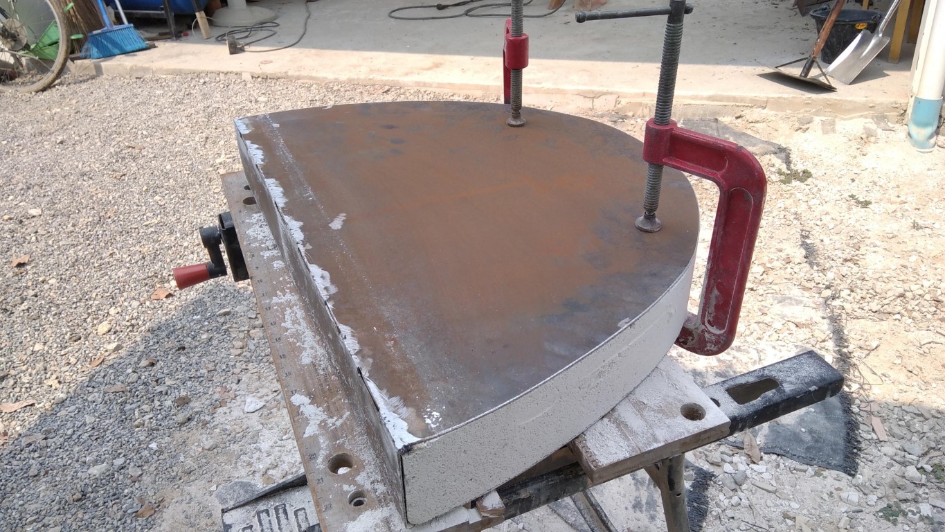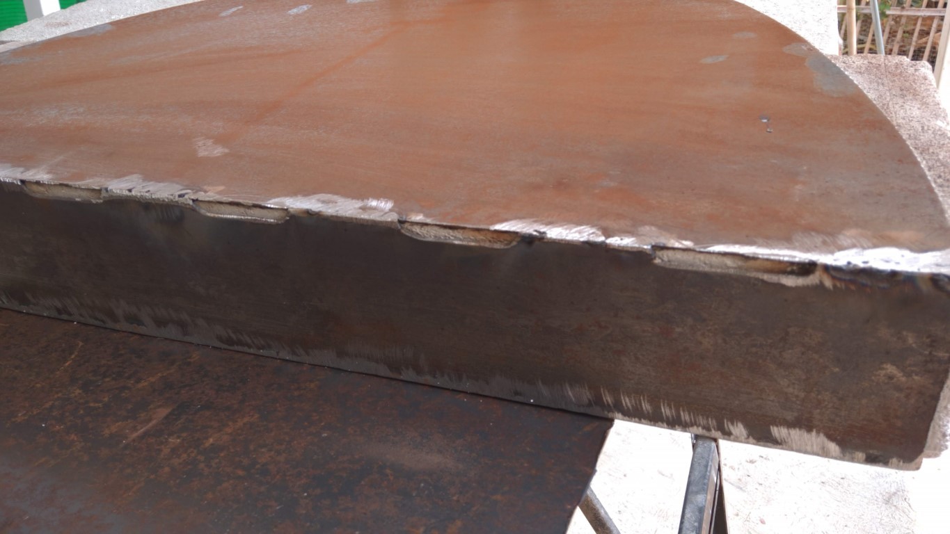 It's made from 2mm steel and a pair of 7.5cm thick AAC blocks sandwiched between the steel faces and carved to fit the shape. First use later today - I will report back on success, or otherwise...
