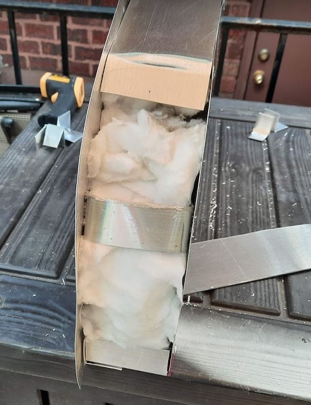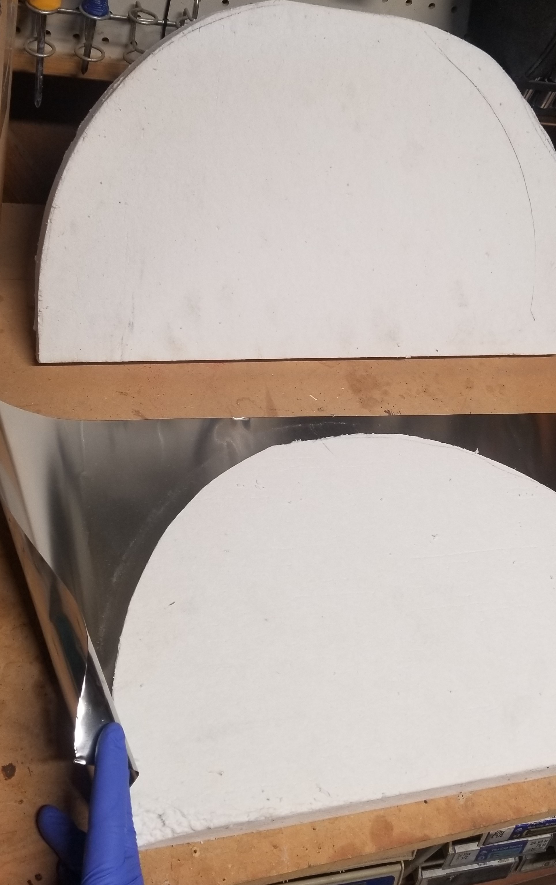 I am going to try and build door out of two 1" pieces of CaSi board wrapped in .002" 304 stainless steel foil. I will cover all exposed edges of the CaSi board with the foil and glue it on with Rutland metal-to-masonry furnace cement. I plan to add an oak or walnut backing to the entire assembly. I may also add a thicker plate of stainless for the bottom portion of the door which contacts the brick floor. Here is a pic of the foil and both CaSi pieces. What do you guys think? Is there another adhesive that you would recommend for attaching stainless to CaSi and CaSi to wood? I will post again once I start putting it together.