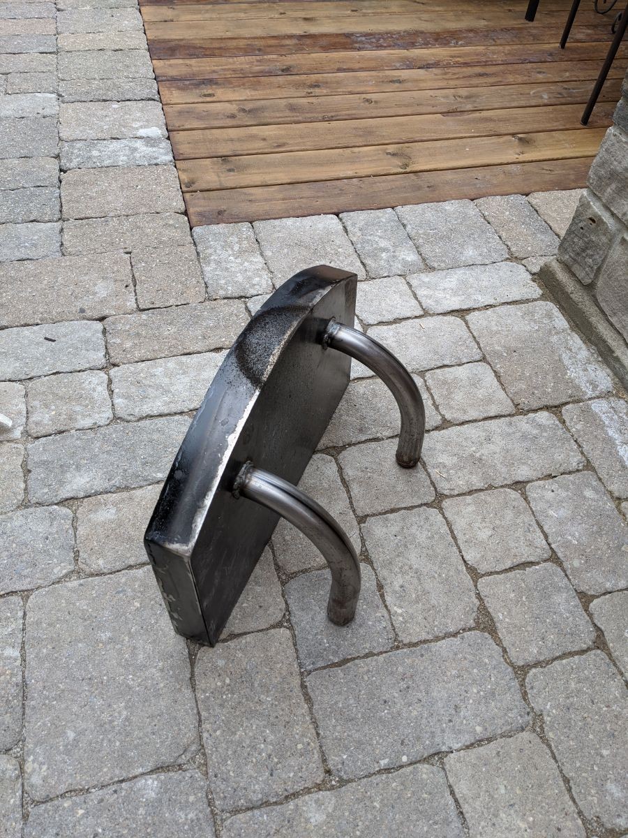 The handles are replacements for concrete floats. Bolted to nuts that are tacked onto the backside of the front plate. Thanks to JRPizza