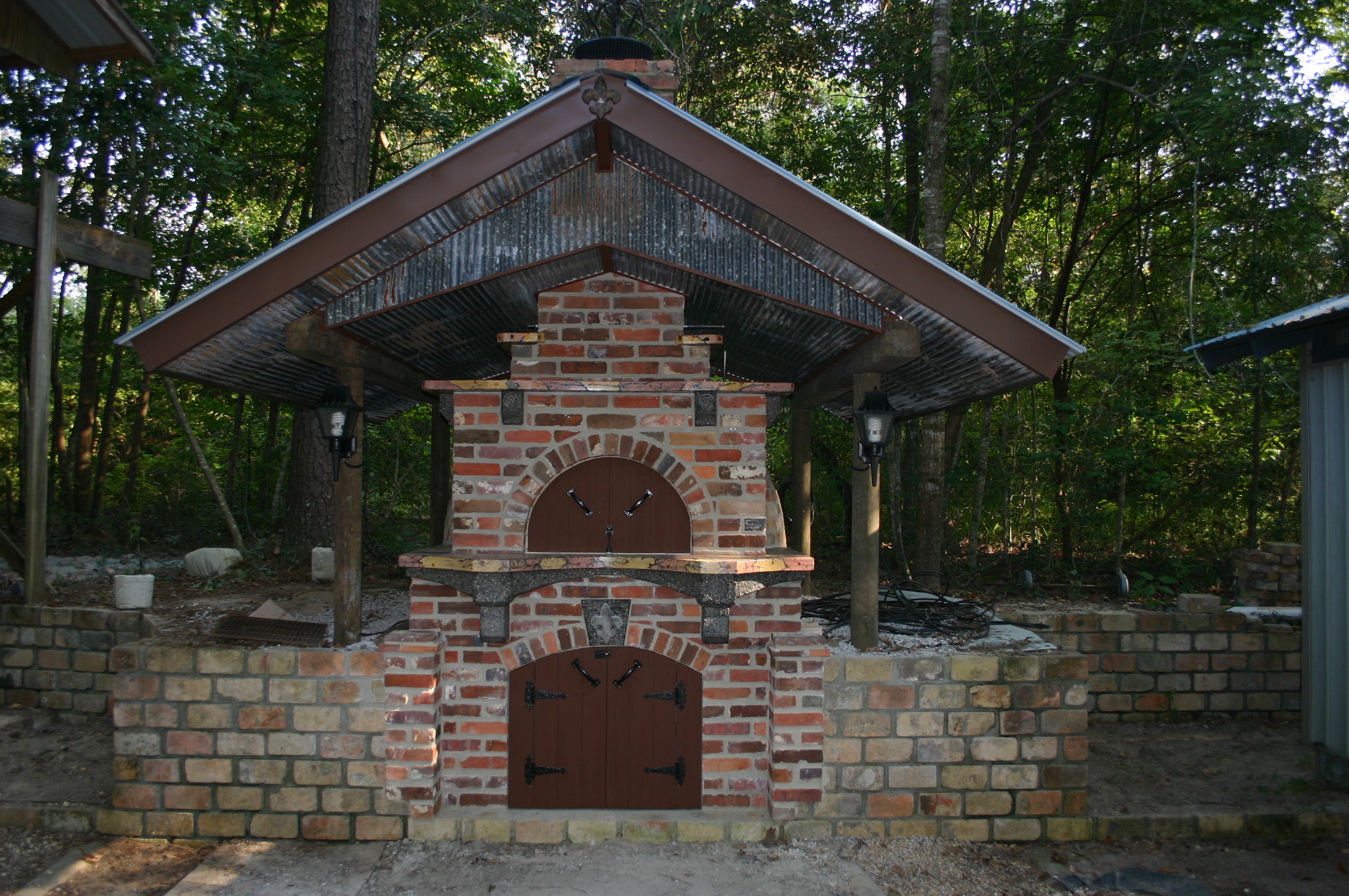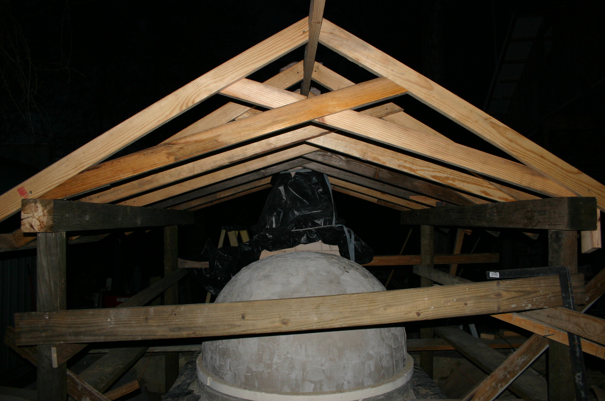 Neill has a good point about any future kitchen design that you might add on. If, one may be in your future plans, now is the time to decide how you will incorporate it. My intentions for a future out door kitchen is to build a wider scissor truss design for it. I would like for the gable overhangs to over lap some, but still have the two structures to be free standing from each other. Another way, that I may decide on, is to build the two structures perpindicular to each other, and valley the two together. But, there are lots of ways to do it. I'm looking forward to what you come up with the "roof over", and the oven .