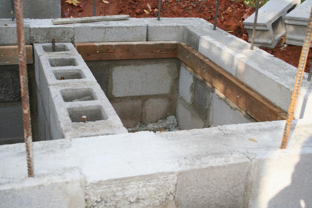 - The pour: I scribbed a line 1" from the top of the block walls and poured a mix of vermiculite, portland cement, sand up to this mark. About 2".