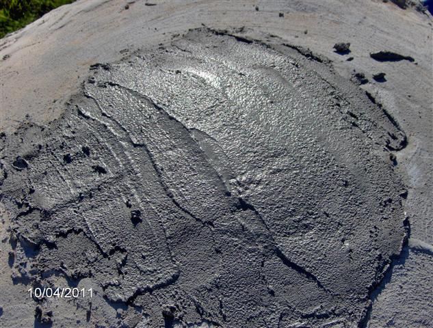 Void filled with dirt from slab pour, layered with cement board and topped with concrete prior to supending slab