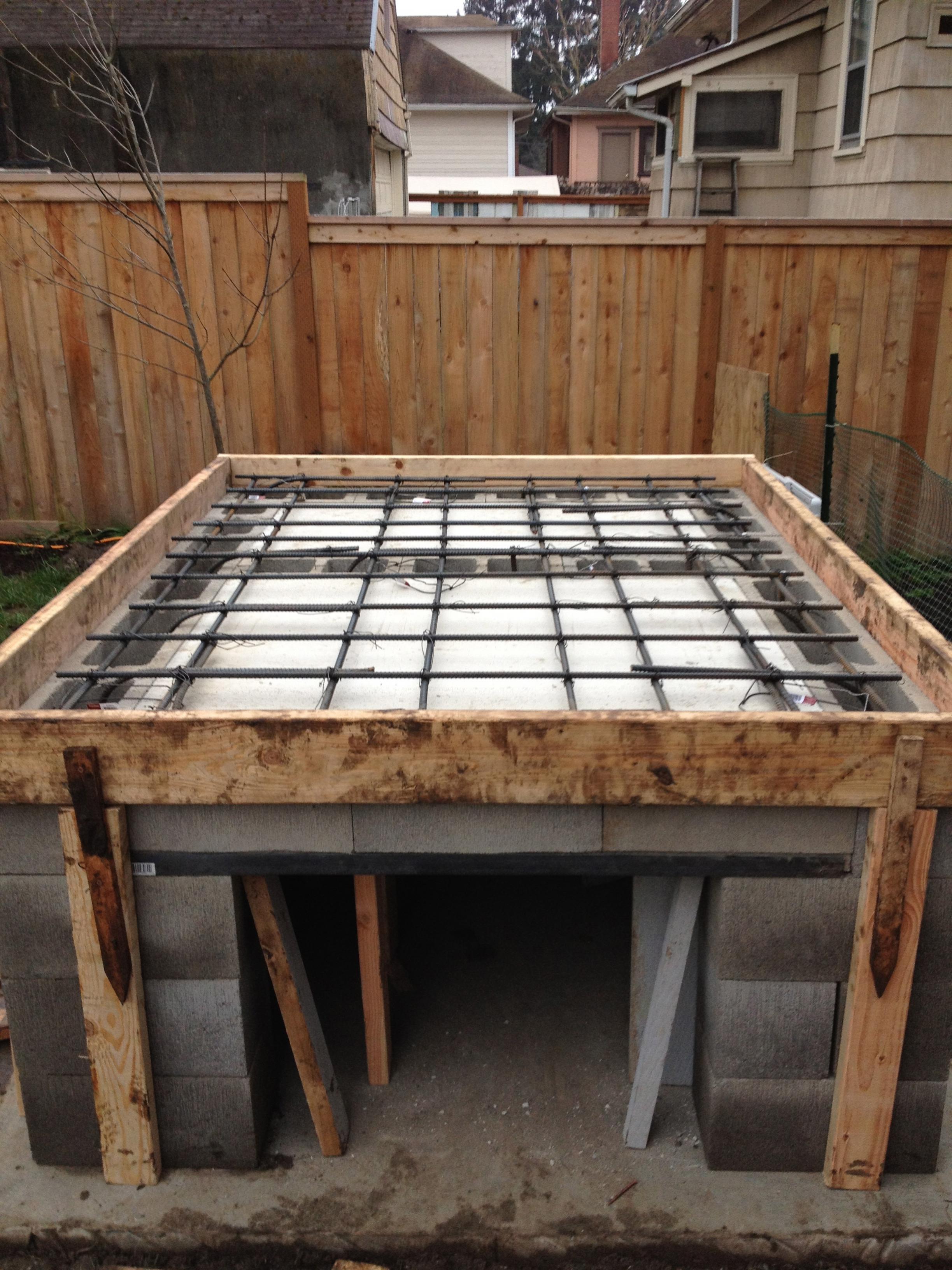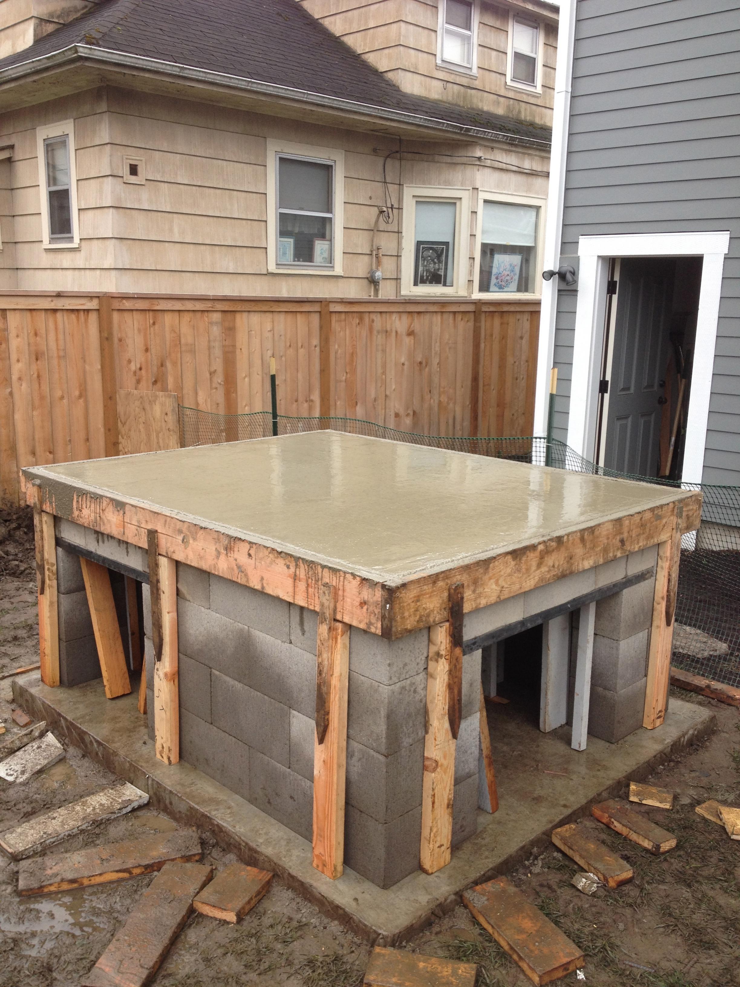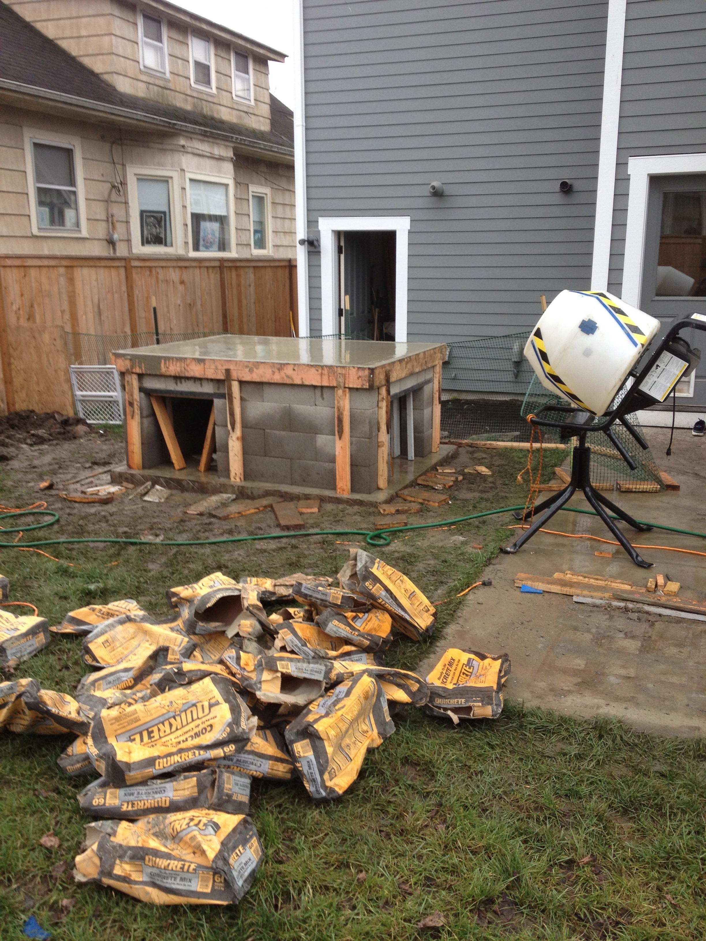 We had a couple of nice weekends, so I tried to capitalize on them as best I could. It turns out planning is not my forte... I was tying the last of the rebar together as the concrete truck was pulling into the driveway! It was my first time working with concrete, and I am glad that it will be hidden by the oven stand.