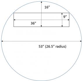 Effective radius will be 26.5", because the walls are high and the dome is so flat. He won't be able to use a string unless he can get the center point under the floor