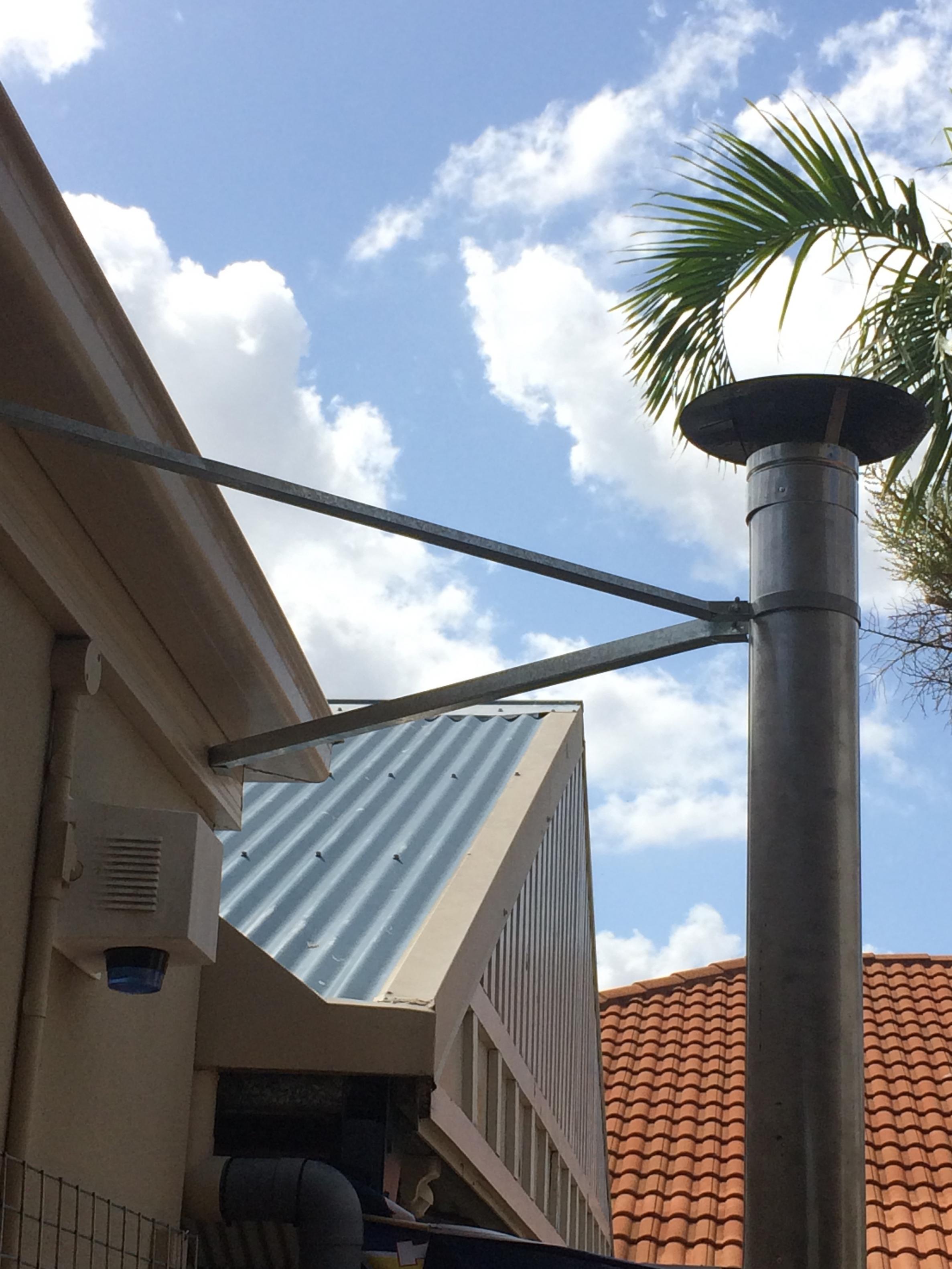 My thoughts are to make the chimney flue approx 1.5m long, sitting on top of a base and oven (lets say approx 1.5m) which would bring the height up to 3m. This should get the smoke over the top of the house next door as long as the wind isn't too strong.