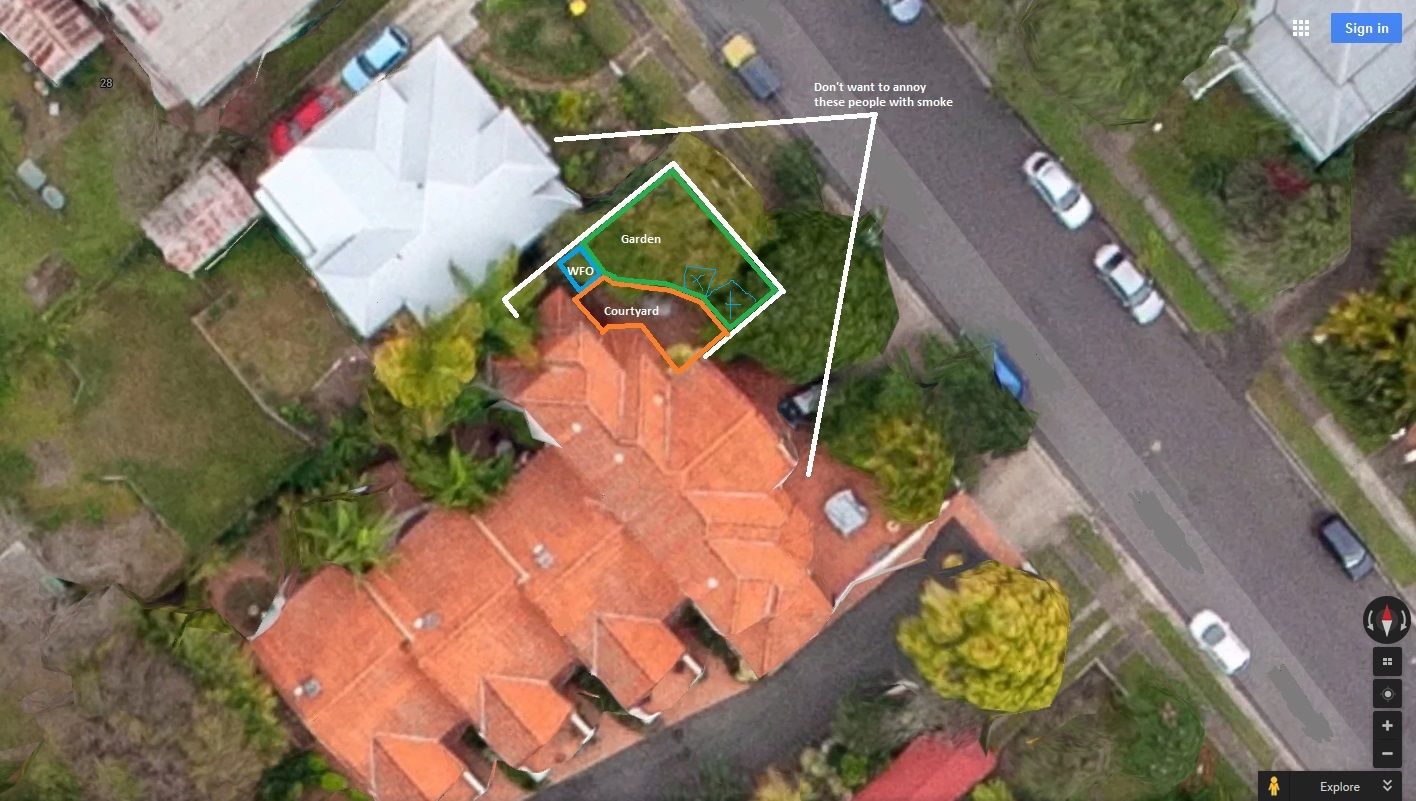 Hi Everyone, I recently joined the forums here and thought I should cover an important question before I get any more excited about actually building an oven. I need to try and work out if my yard/oven location are going to be suitable for having a wood fired oven without smoking out the neighbours and ending up having an oven I can't use.