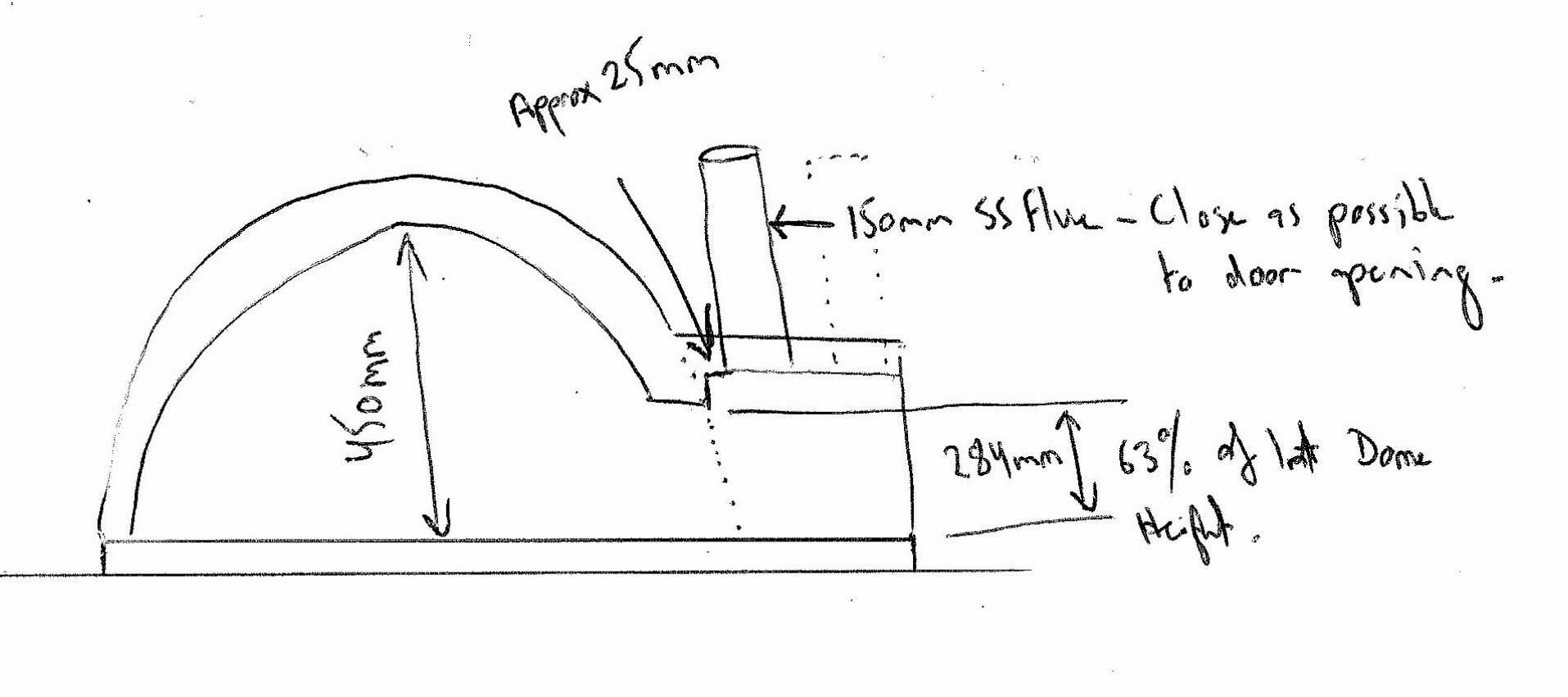 For the flue. It seems like I should make up some kind of antichamber (flue gallery?). Was thinking of something around 300mm wide, 200mm deep and tapered to 100mm high before the flue sits in and have the taper start right next to the oven chamber door frame where the smoke comes out..Not quite as high as yours Dave but hopefully should still do the job (or not!)
