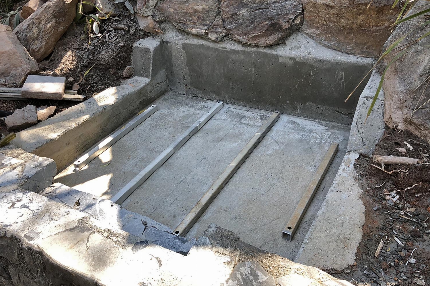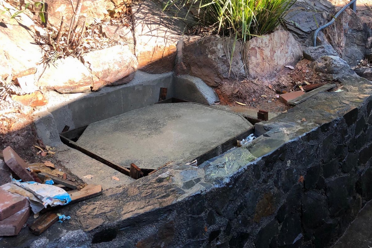 As for my build, I do have a drain hole in the lower left corner about 22-25mm in size. The "basin" also has a 60-70mm crossfall from the rear right to the bottom left corner. Refer pikkie below. When it's all finished and has the pavers set around it, I expect there will be very little water getting in there. So hopefully I should be fine and the oven base stays dry..