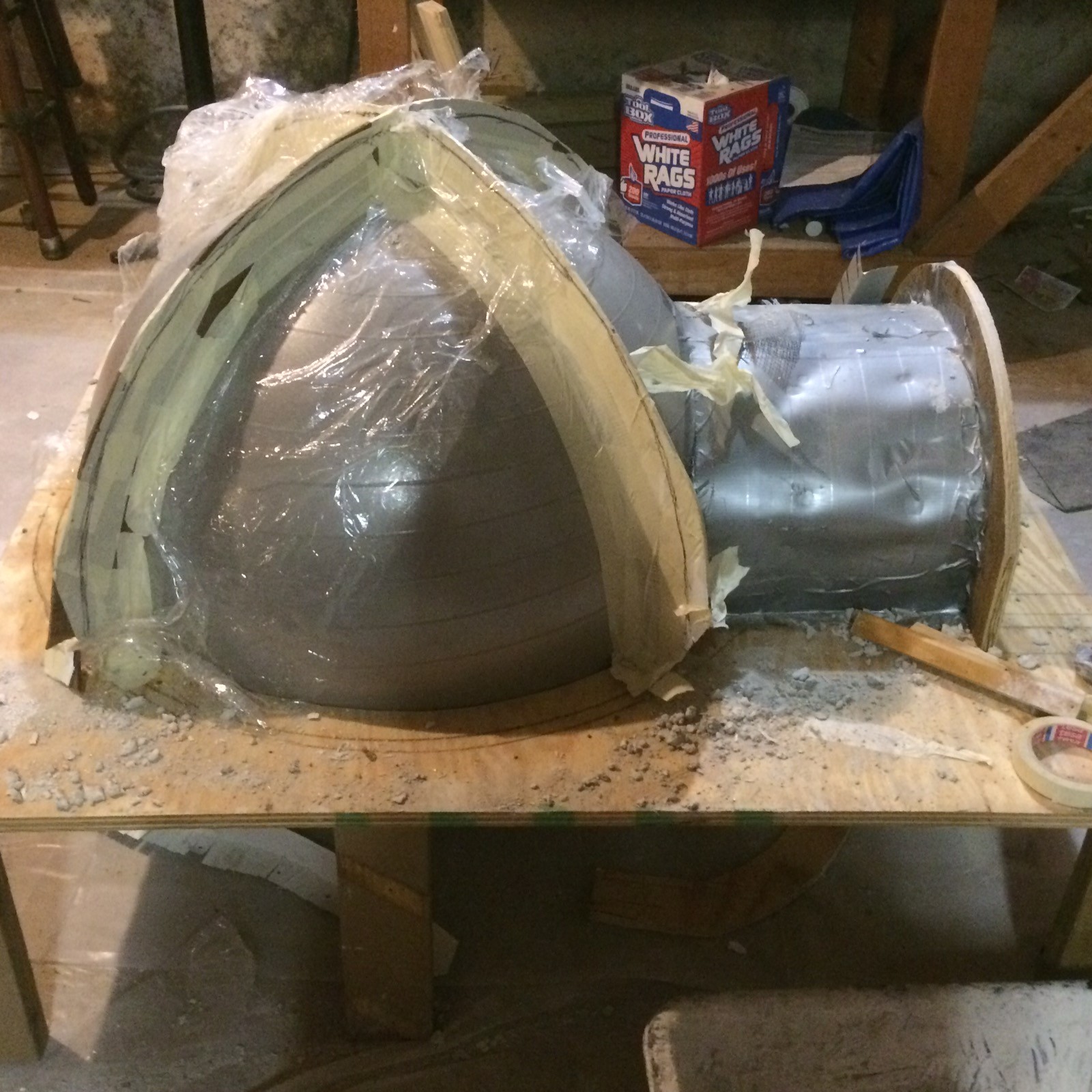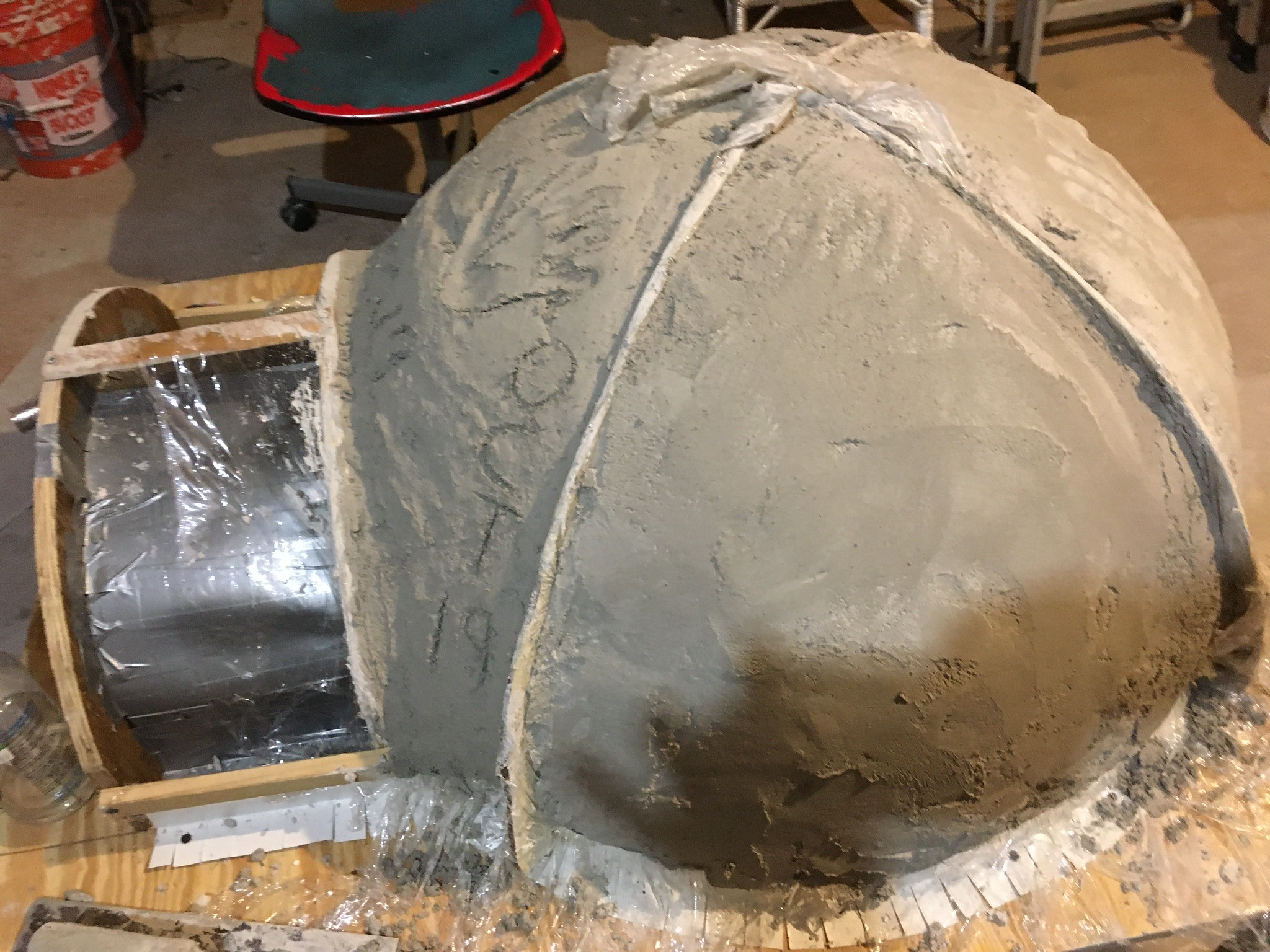 Please disregard the flue gallery as after reading some posts on this forum I have decided to cast it separately as mentioned above in one of the questions. And also the duct tape roll on top of dome is just resting there, not part of the mold