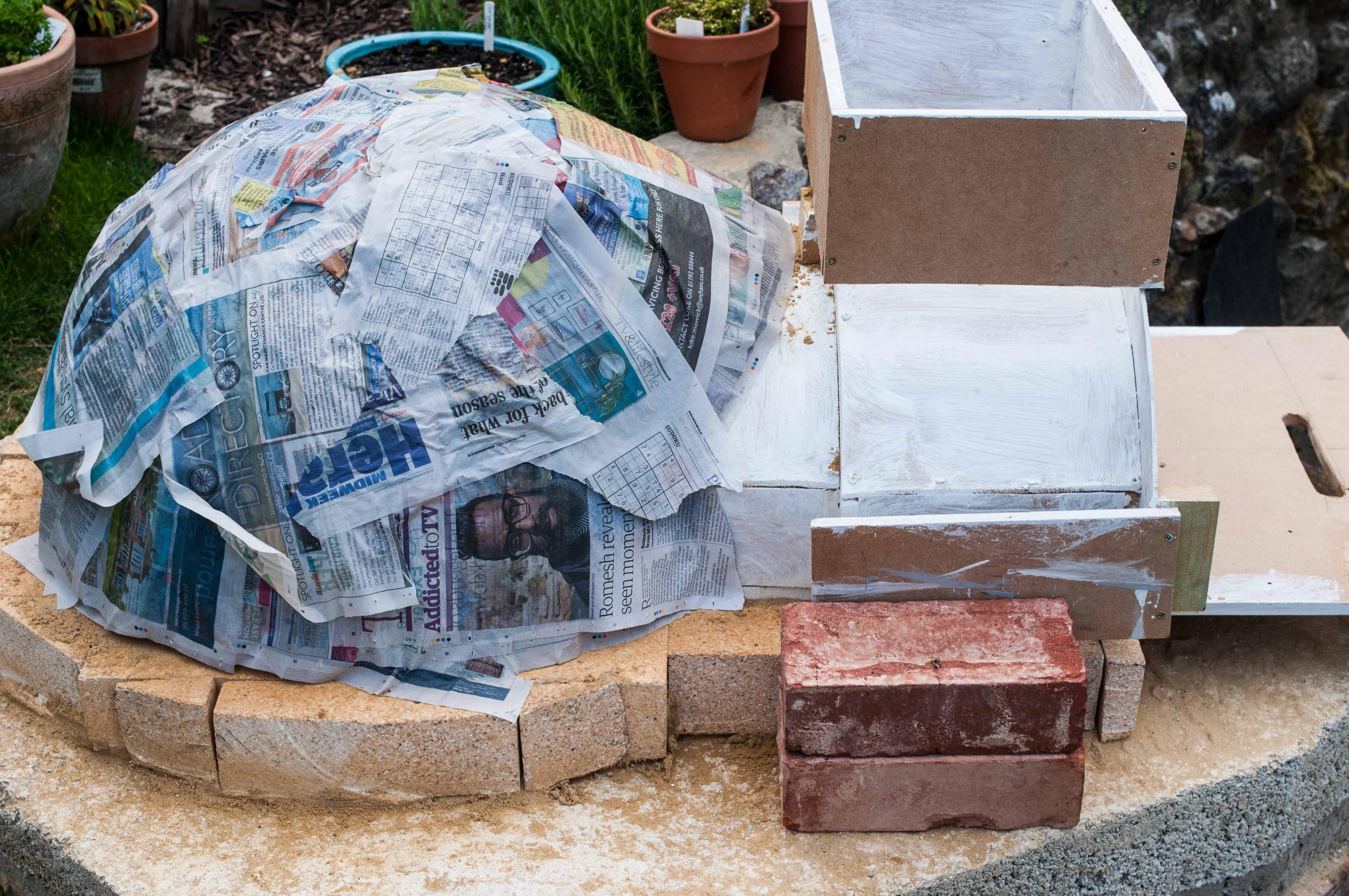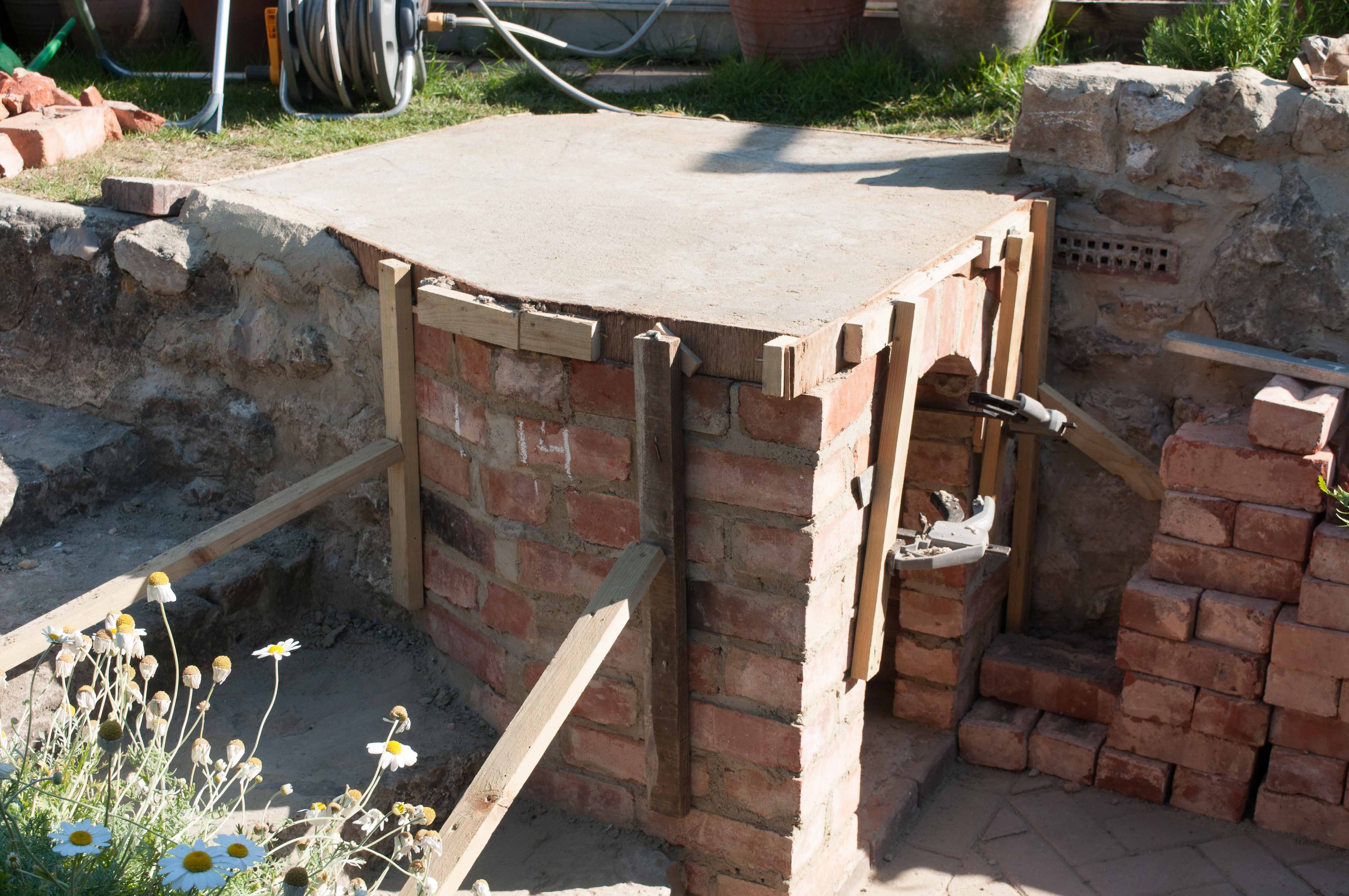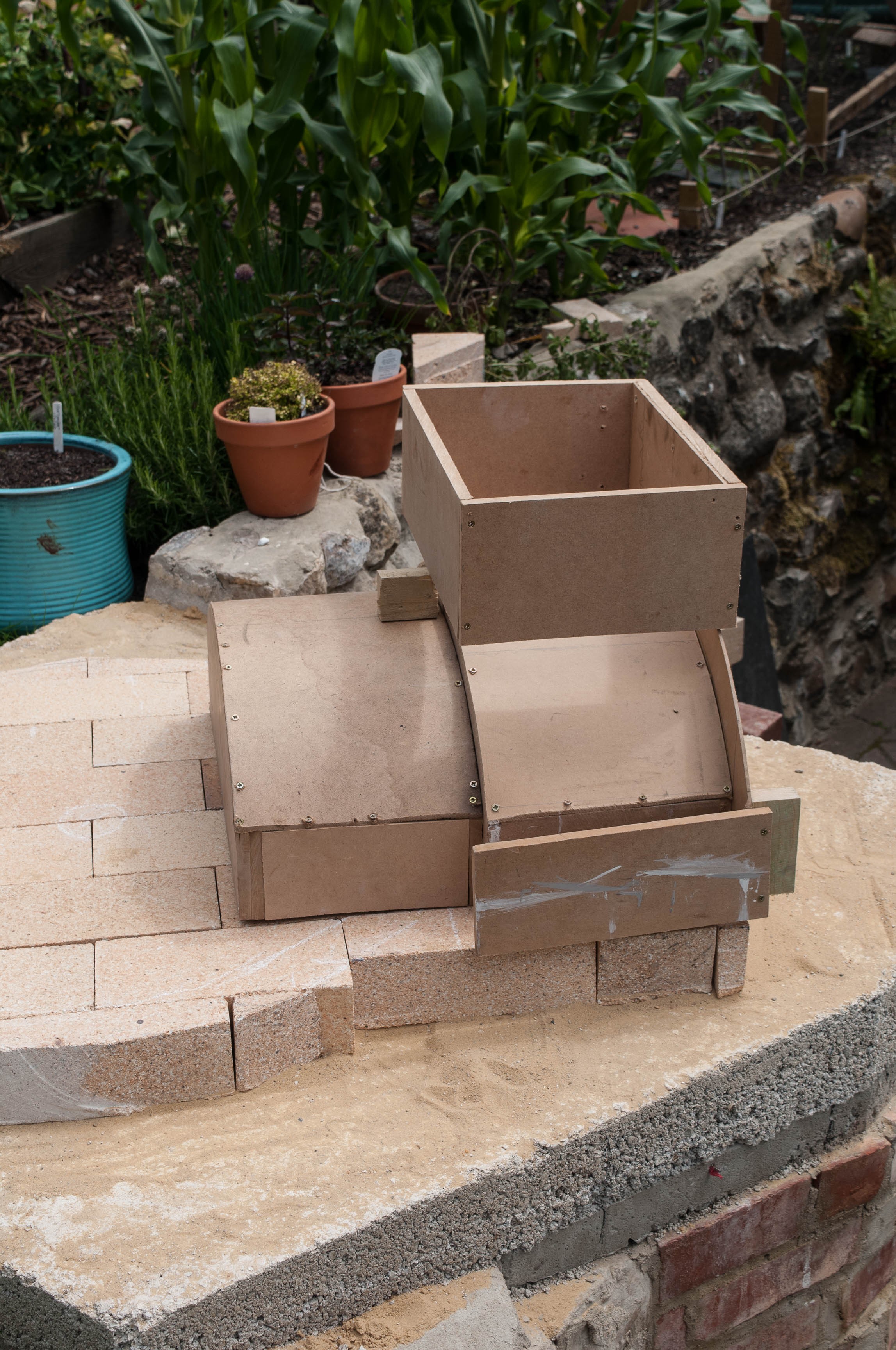 I've almost completed the stand for my oven, using reclaimed clay bricks. Next is the standard concrete base layer that the hearth/oven will sit on. I've got the form-work in place for casting the base, which will be strengthened with 10mm steel reinforcing bar and is 75mm thick. I've added a 65mm x 150mm lintel for additional as well. Some of the base will sit on a rubble layer over part of a raised area of the garden.