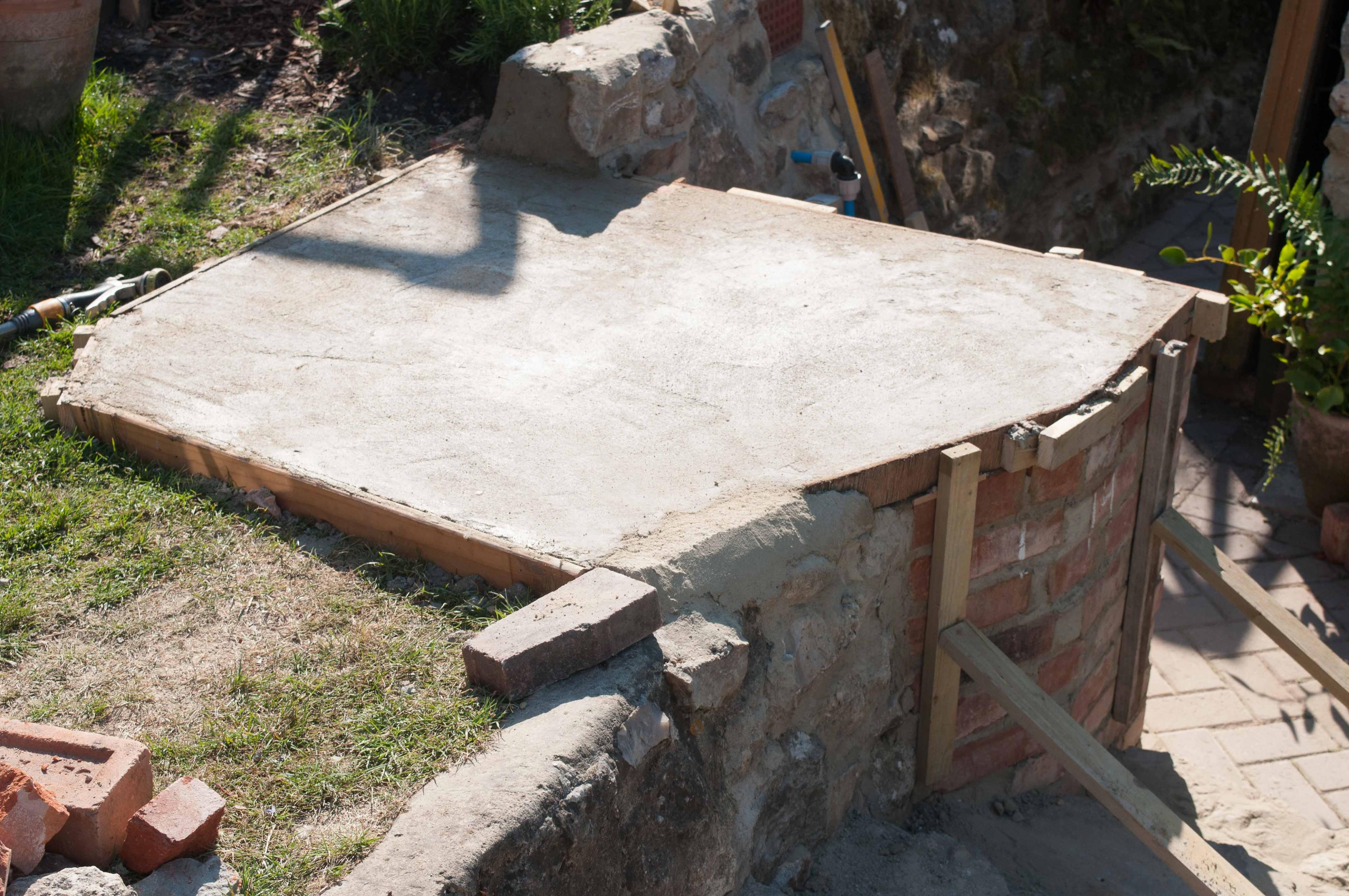 Having got the homebrew on, I let it cure/dry for about three weeks. This was by just watching the weather and covering it up if there was a lot of rain on the way. Checking it all round, I was relieved to see no cracks appearing. I'm still looking at Mullster's suggestion to look at getting rid of some of the Vermicrete outside of the dome area.