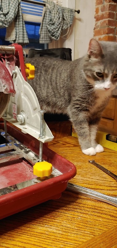 I modified the wet saw to allow bricks to fit under the motor housing.