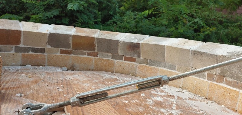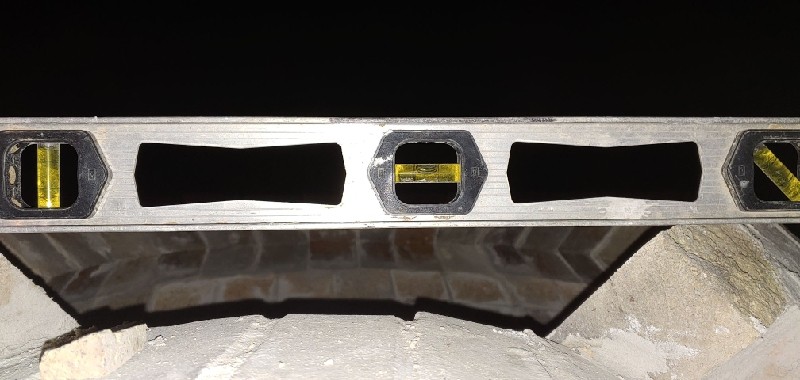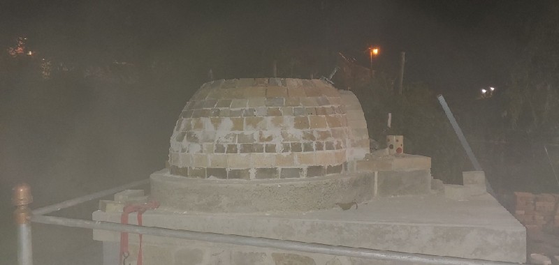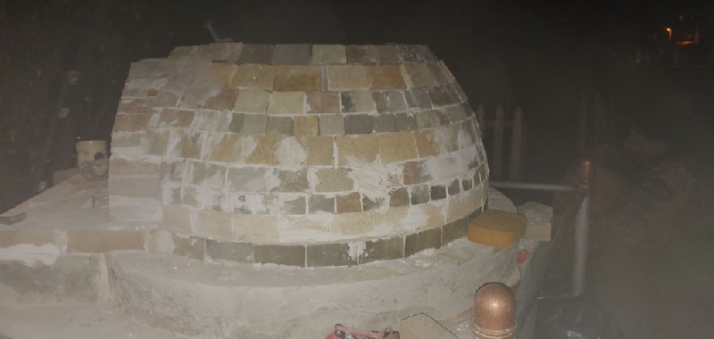 The 1st several courses have a taper/bevel on 3 of the 4 long sides. My idea was the more exact I cut the bricks, the less gap I'd have between them and thus to use a lot less mortar. It worked that way. I'm this far into the build and have only used 1.25 bags of mortar where a lot of other builders have used 3+ bags for their build. The b.... here is how much time it took to make all of those extra cuts. For time management sake, it's better to just use more mortar. I'd be finished with the dome by now if I did. The last few courses I've laid don't have the bevel cut on the top. Just the sides that touch the adjacent brick in the same course.. The increase in the gap between the rear of the bricks is easy to see in the picture if you look for it.