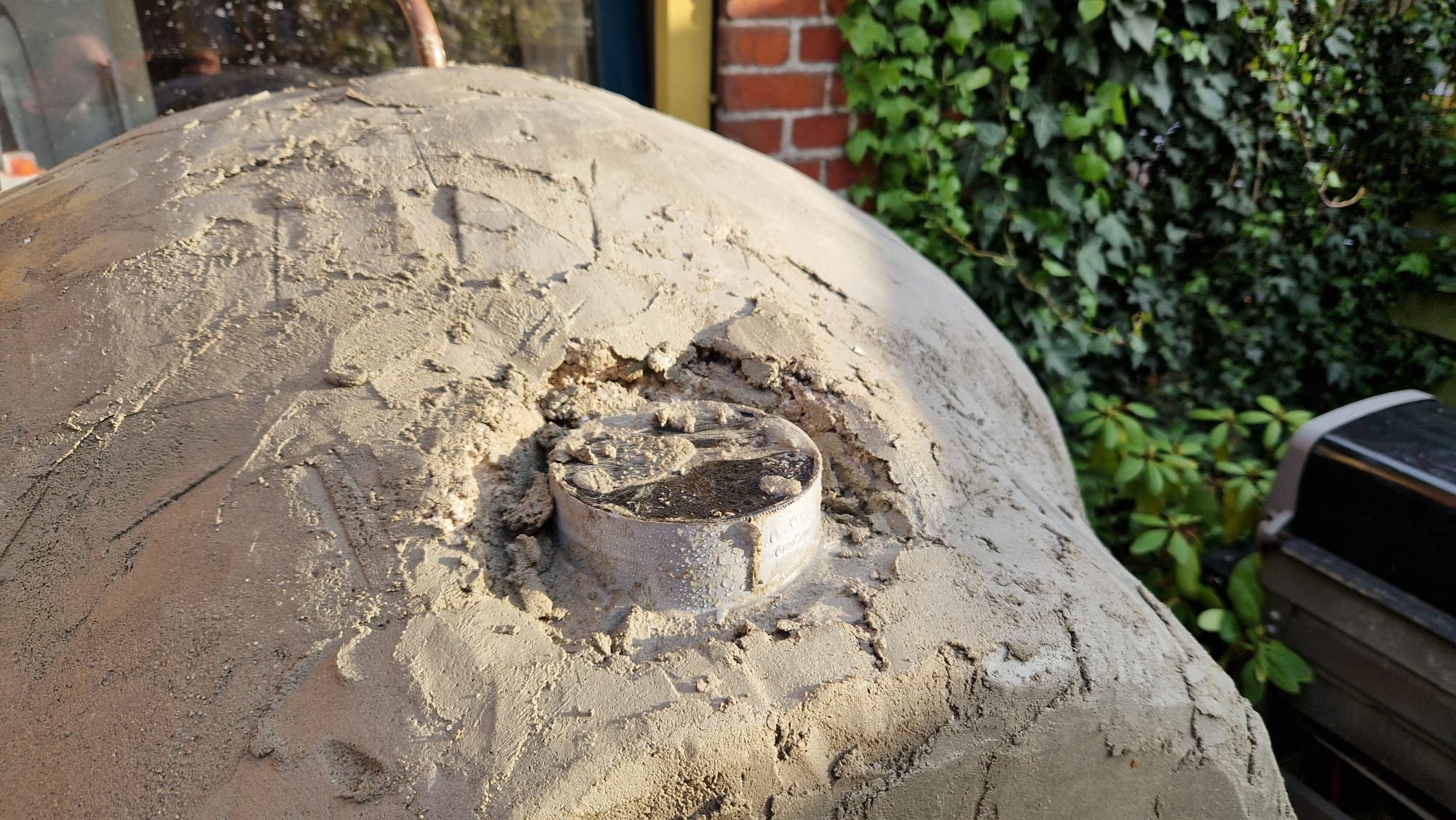 I put render on the dome of the oven. It turned out a bit rough. But I will sand it down and fill some of the rough patches: