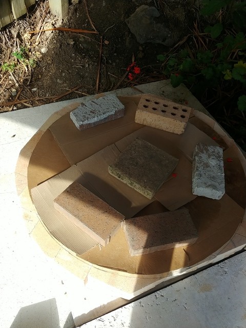 Laid the fire bricks down and cut the the pieces with an angle grinder (125mm). Soaked the bricks for a couple of hours while I exchanged the correct cutting disc, the inner diameter was incorrect. One disc cut about eight bricks before slowing down. Very happy the bricks are very flat with no edges catching on a trowel to test it.