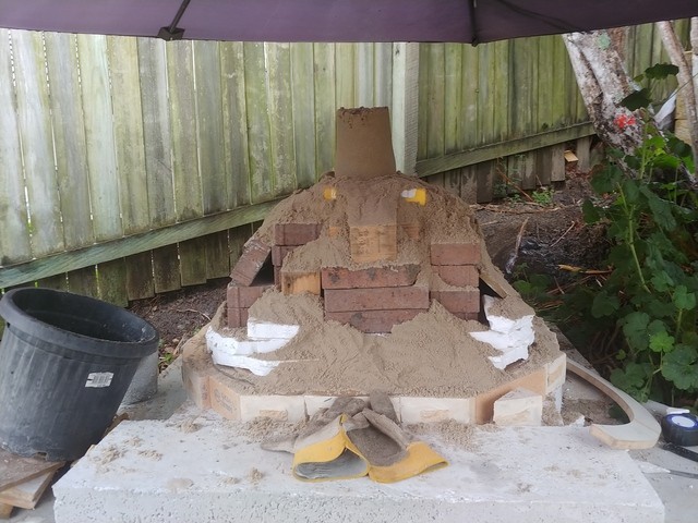 Built the sand dome which looks good and gives me motivation to keep on going![*]Questions: If I don't finish the dome (by leaving the gallery to do afterward) how long do I have? Is it the next day or can it be a few days later? Also how do I finish the edge of the mud so that it joins again when I do the gallery.[*]Is it worth putting a join around the top 1/4 as a natural expansion/crack line. Someone else did it here and it seemed to work. Could this be done by simply putting a piece of paper/card board between the bottom 3/4 and the "scull cap" top piece which would burn out leaving a join?[*]I put strips of wet newspaper on the dome, but it seems to slip around and has wrinkles. I have seen another FB build where they cast the dome on the sand with good results.[*]I have one bag each of lime and clay will this be enough? I have several bags of cement and a pile of sand. 85cm/33" dome.[/LIST]Fibers. I don't have fibers yet as I'm not sure which ones to get. I looked at the Sika website and found this Sika® Confibre® 19F fibrillated polypropylene, melting point 160c. Are these correct? Or these ones? Sika® Confibre® 51F. Jim, the guy I got the oven supplies said they are difficult to handle and its not really worth it.